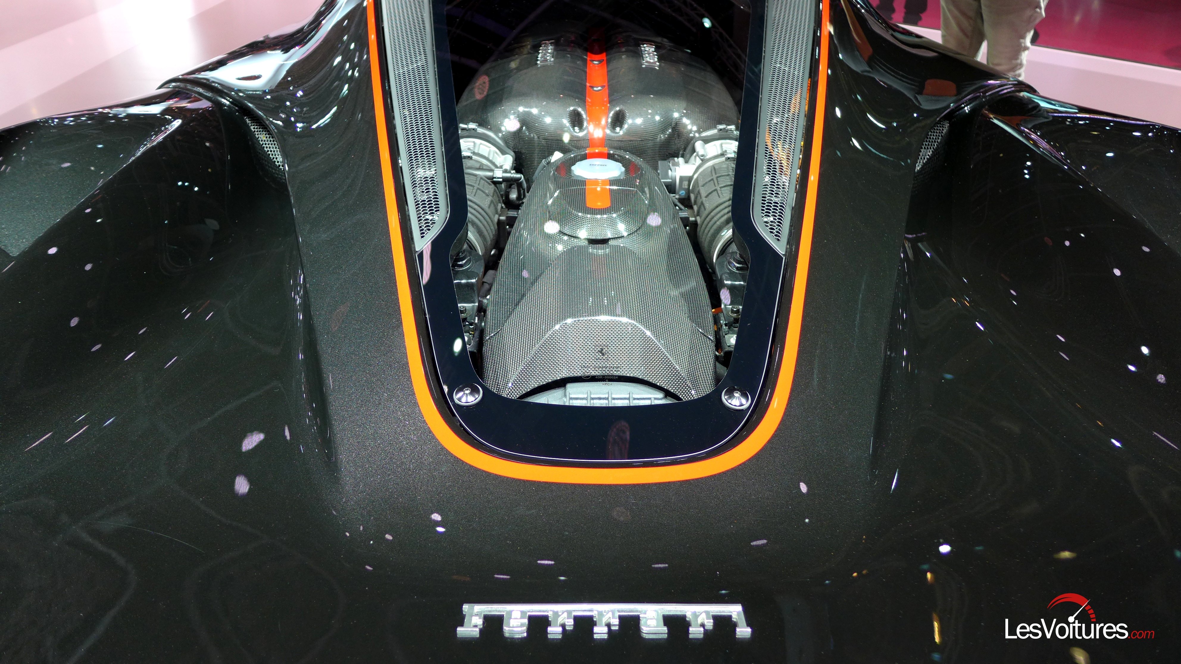 Pour ce qui est du design, la recette est plutôt simple avec la suppression du pavillon et une abondance de carbone. Une association d’idées qui malgré ce concept presque monégasque ou tropézien de balades cheveux au vent fait de cette bombe de 963 ch un missile sol-sol plutôt inattendu. La teinte noire soutenue par quelques liserés rouges achève le travail de radicalisation qui nous ferait presque oublier que nous avons les oreilles à l’air.