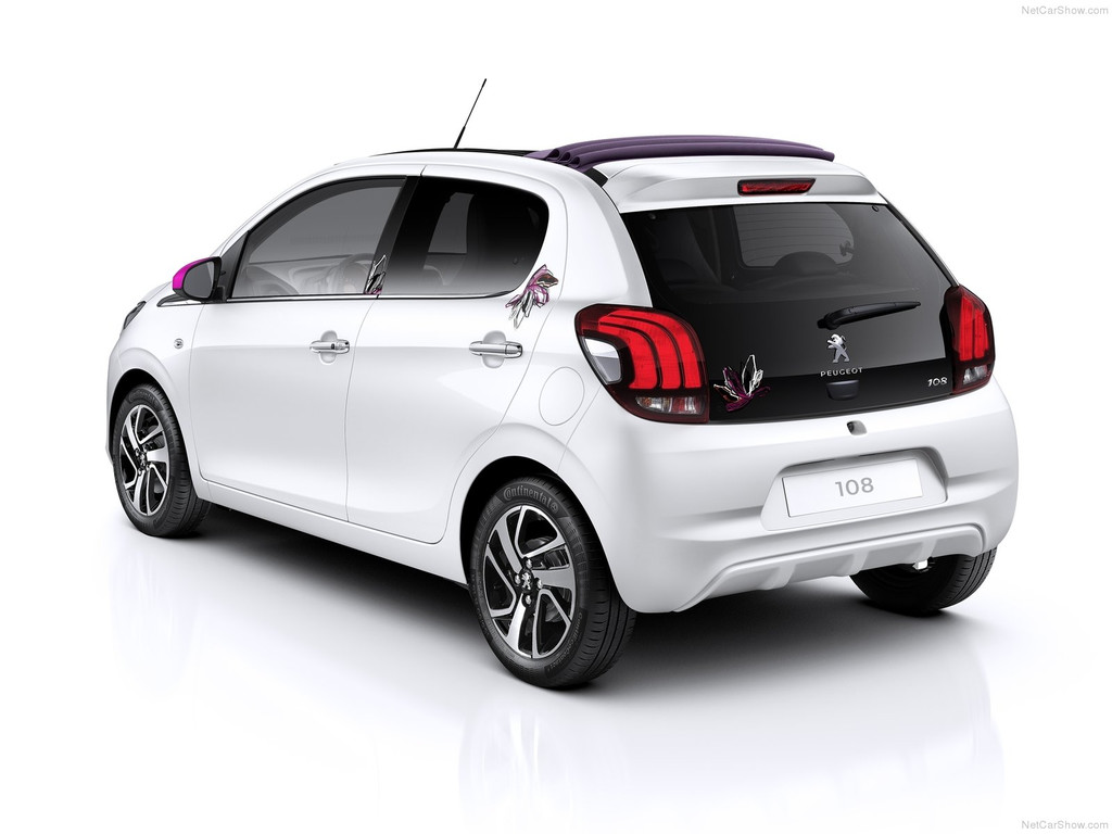 C’est au niveau de la personnalisation de la 108 que tout se joue. Déjà très élégante, la 108 est aussi une voiture « très fashion » car elle offre de multiples possibilités de personnalisation. De base, 8 coloris sont ainsi disponibles dont 2 nouvelles (Aïkinite et Red Purple) et le modèle 3 portes peut se vanter de ses teintes bi-ton (Red Purple/Gris Gallium ou Blanc Lipizan/Aïkinite). Quant à la toile de la 108 TOP, elle est disponible en Noir, Gris ou Red Purple. Mais ce sont bien les 7 thèmes de personnalisation qui sont les plus intéressants. Ils jouent sur les point suivants : stickers extérieurs, stickers intérieurs, coques de rétroviseurs, boîtiers de clefs, tapis de sol. Ces 7 ambiances de décorations (Dressy, Dual, Diamond, Kilt, Barcode, Sport et Tattoo) sont accompagnées par 3 choix de décors intérieurs qui touchent la planche de bord et la façade centrale. Enfin et pour l’habitacle, la 108 propose 5 garnissages au choix.