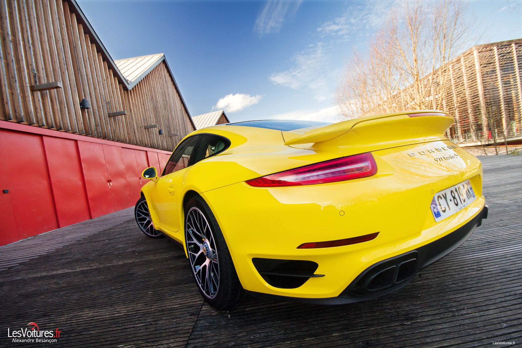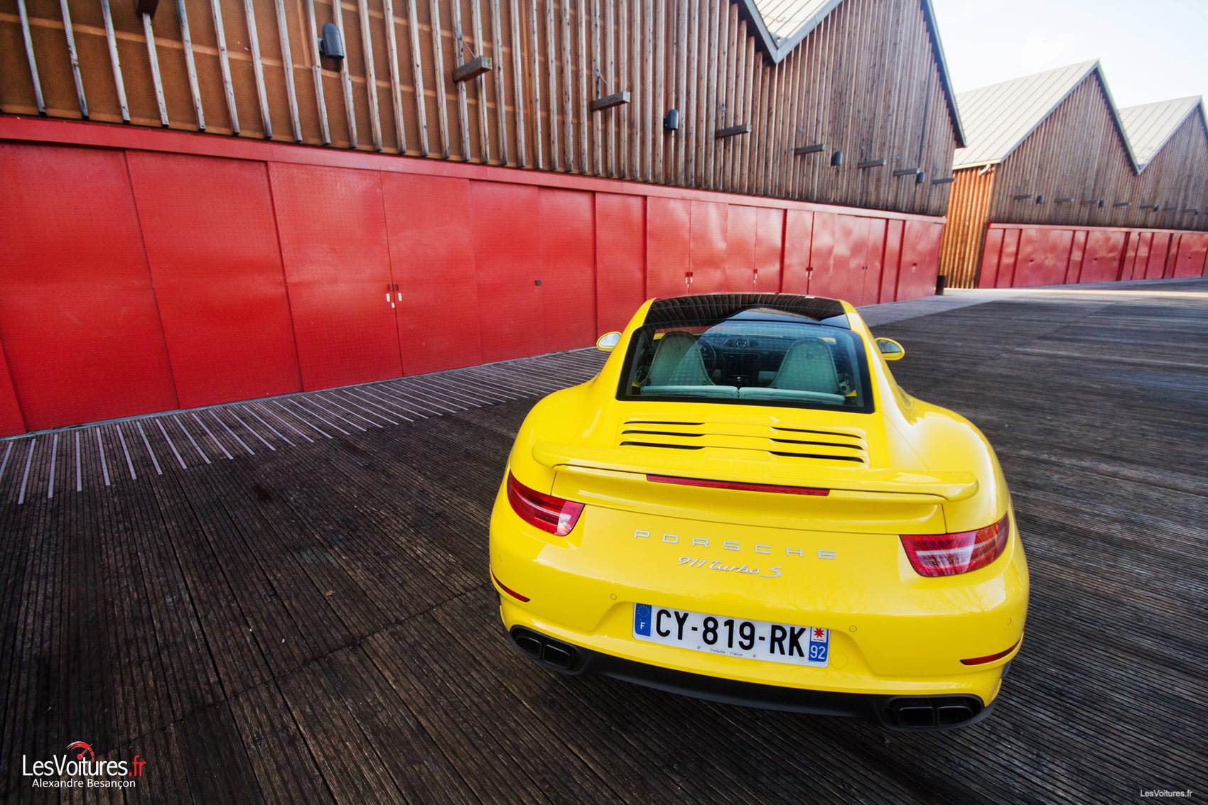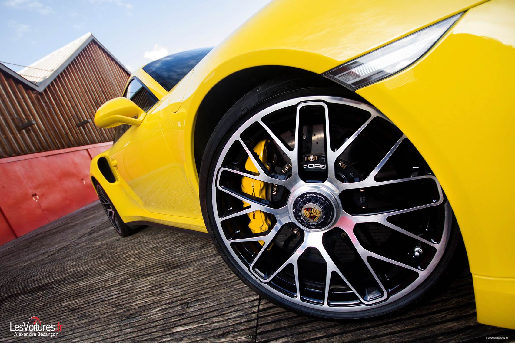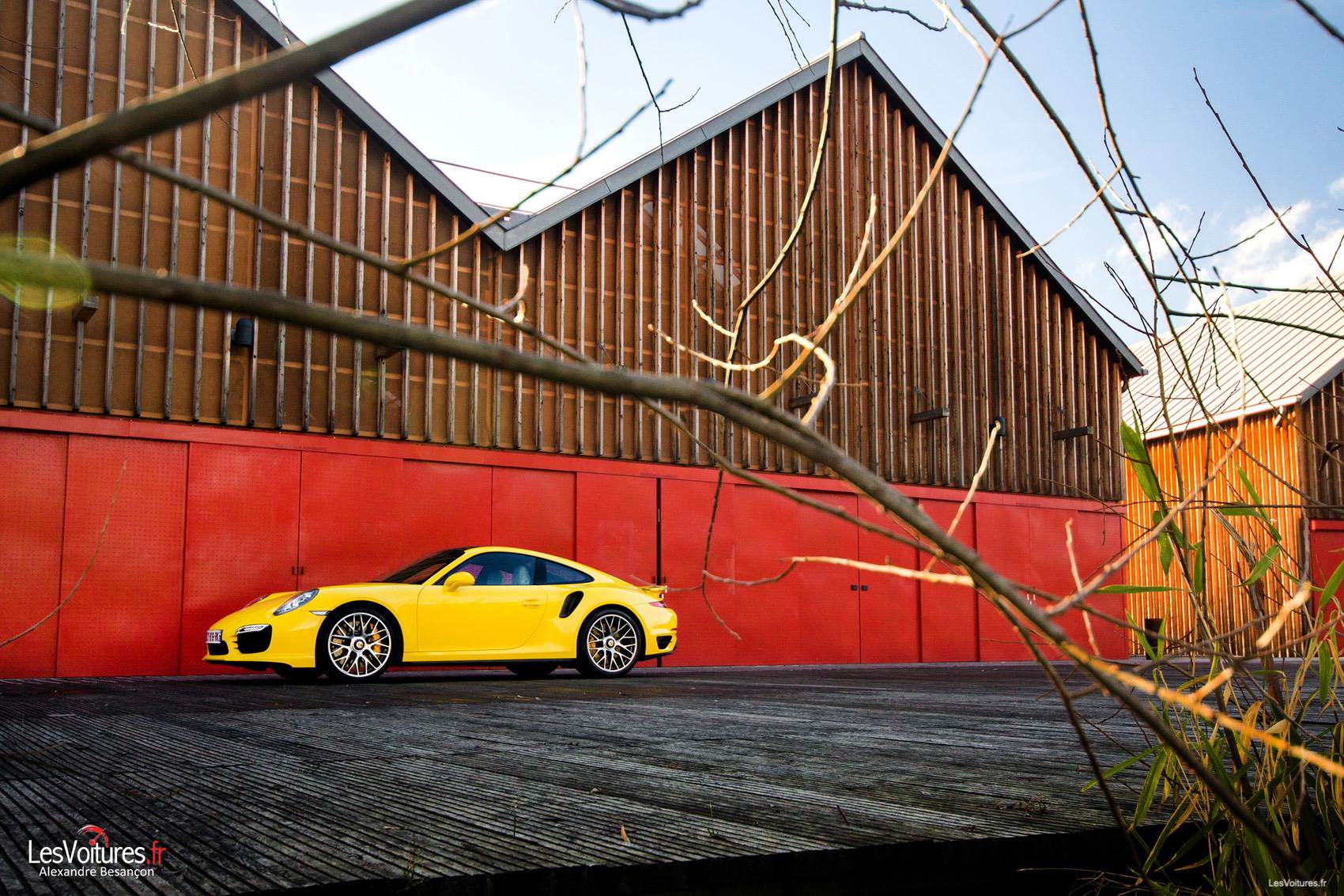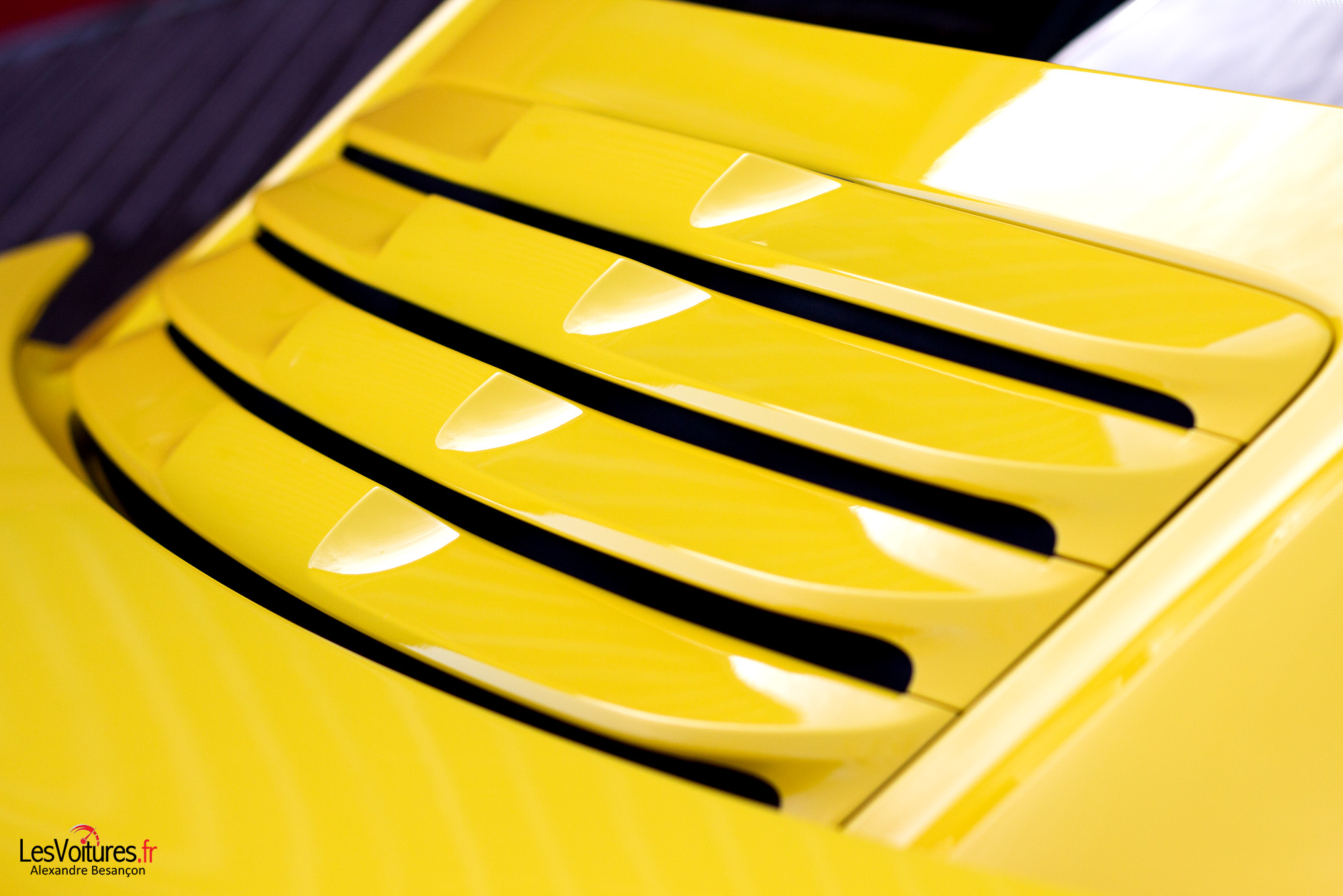 Le nom de la teinte de notre rutilant objet à quatre roues motrices et directrices nous a immédiatement mis dans l’ambiance. Le « Jaune Racing » de notre 911 Turbo S d’essai est tout simplement exceptionnel. Certains critiqueront peut-être une certaine prétention colorée mais la 911 l’assume fièrement et au premier coup d’œil les optimisations de cette version S ressortent superbement.