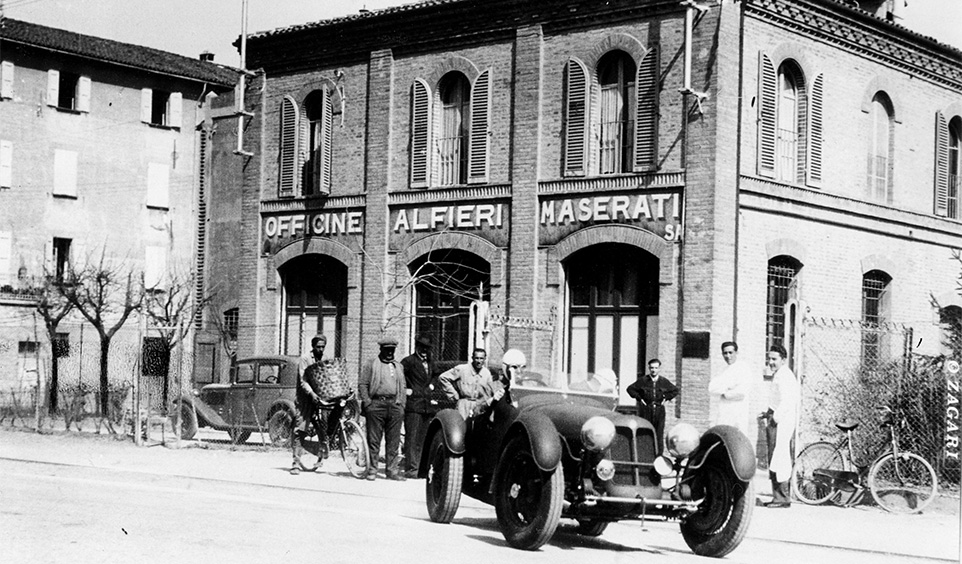 Tout a commencé il y a un siècle lorsque l’atelier des frères Alfieri, Ettore et Ernesto a ouvert ses portes à Bologne. Le trident de la statue de Neptune qui orne la fontaine de Piazza Maggiore est devenue le symbole de Maserati. Le rouge et le bleu, couleurs de la ville de Bologne sont toujours celles de la marque.