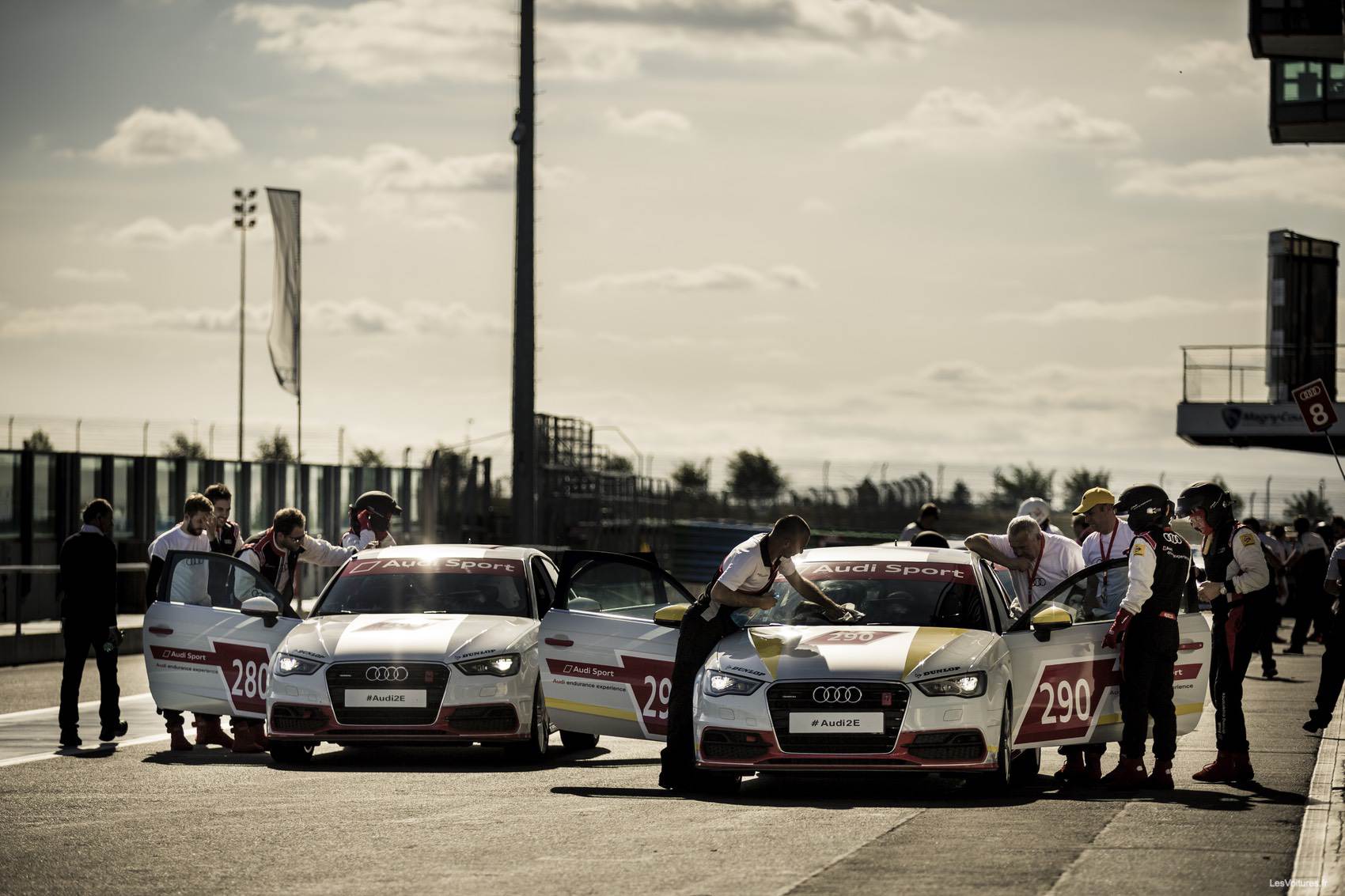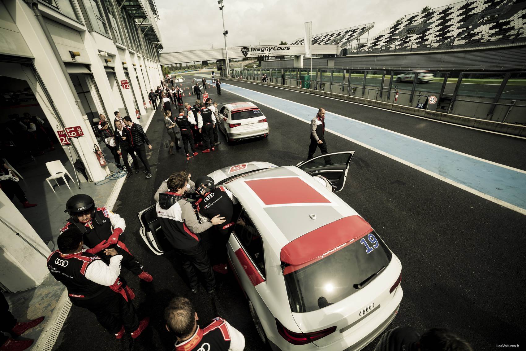 C’est donc 25 équipes de 5 personnes qui se sont affrontées sur le circuit technique de l’ancien Grand Prix de France de Formule 1. Dès l’arrivée sur le circuit nivernais, chaque pilote a pu se plonger dans l’ambiance particulière des paddocks de circuits. Les 25 Audi A3 1.8 TFSI quattro étaient toutes alignées, tels des chevaux attendant le départ pour bondir de leur box.