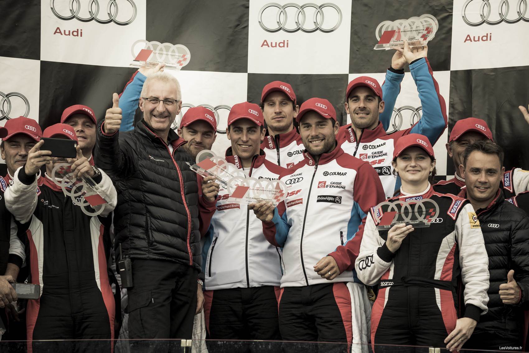 C’est dans une ambiance de camaraderie que tous se retrouvent au pied du podium, pour célébrer les vainqueurs. De camaraderie mais aussi une pointe de jalousie ! Les premières équipes inscrites par sur MyAudi (réseau Audi), ainsi que les premières équipes inscrites par le réseau de concessionnaires partenaires se qualifient en effet pour la grande finale, qui a lieu sur un circuit de glace construit pour l’occasion en… Laponie ! D’autres heureux et talentueux concurrents les rejoindront, selon l’issue des deux autres manches qualificatives les 5 et 6 novembre sur le circuit Bugatti du Mans et les 26 et 27 novembre sur le circuit Paul Ricard au Castellet.