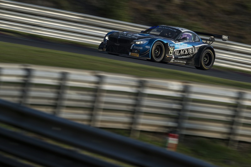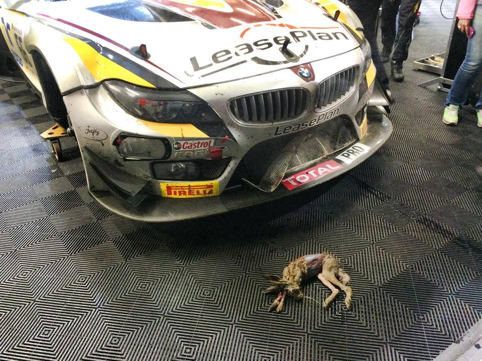 La BMW Z4 GT3 #77 du BMW Sports Trophy Team Marc VDS (Luhr/Paltalla/Wermer) mène les débats devant l’Audi R8 LMS Ultra #1 du Belgian Team WRT (Rast/Vanthoor/Winkelhock). L’autre BMW de l’équipe belge a abandonné. En effet, la #66 de Martin/Müller/Farfus s’est retrouvée avec un lièvre dans la calandre, fait insolite qui a engendré une fin de course prématurée.