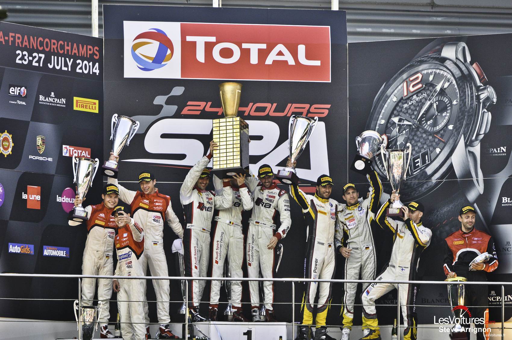Au final, le trio Vanthoor/Rast/Winkelhock l’emporte donc devant Markus Paltalla, Lucas Luhr et Dirk Werner. Les pilotes de la BMW Z4 GT3 #77 auront tout donné et seulement 7″077 les séparent de l’Audi victorieuse. La faute peut-être à une auto en délicatesse avec son ABS et son traction control en fin d’épreuve. Sans oublier les précieuses secondes perdues par Markus Palttala, le samedi en début de soirée. En effet, le pilote finlandais est resté bloquer plusieurs tours derrière une Mercedes-Bens SLS AMG GT3 qui était bien loin de la tête de course, et dont le pilote aurait dû laisser la voie libre à la Z4 GT3… Le classement final de l’épreuve est à retrouver sur : 24 Heures de Spa 2014.