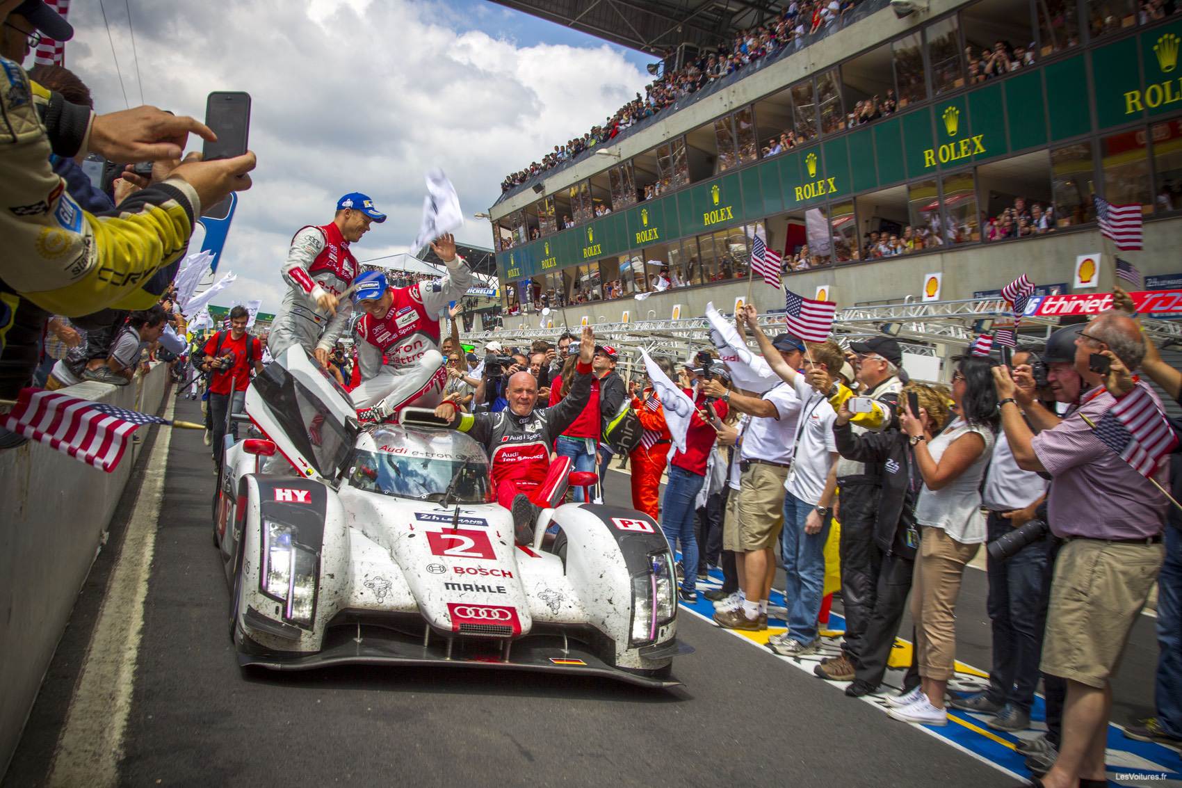 Une mention toute particulière est à décerner à Marc Gené, remplaçant de Loïc Duval après l’accident du français aux essais, qui a magistralement pris en main la R18 #1 en signant des chronos autant réguliers que terriblement rapides. Pour son grand retour dans la Sarthe, l’équipe officielle Porsche a fait parler d’elle. Les Porsche 919 Hybrid ont montré de très belles aptitudes et un niveau global de fiabilité correct. En menant la course à plusieurs reprises, le prototype allemand a parfaitement rempli sa mission.