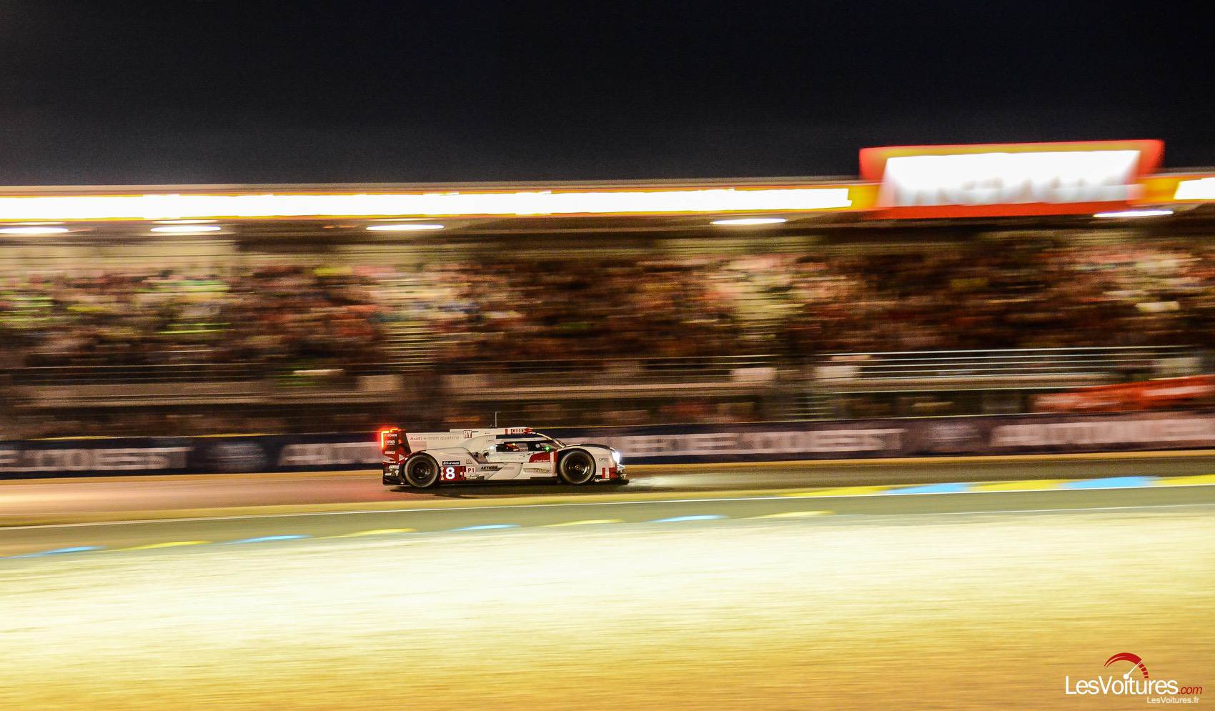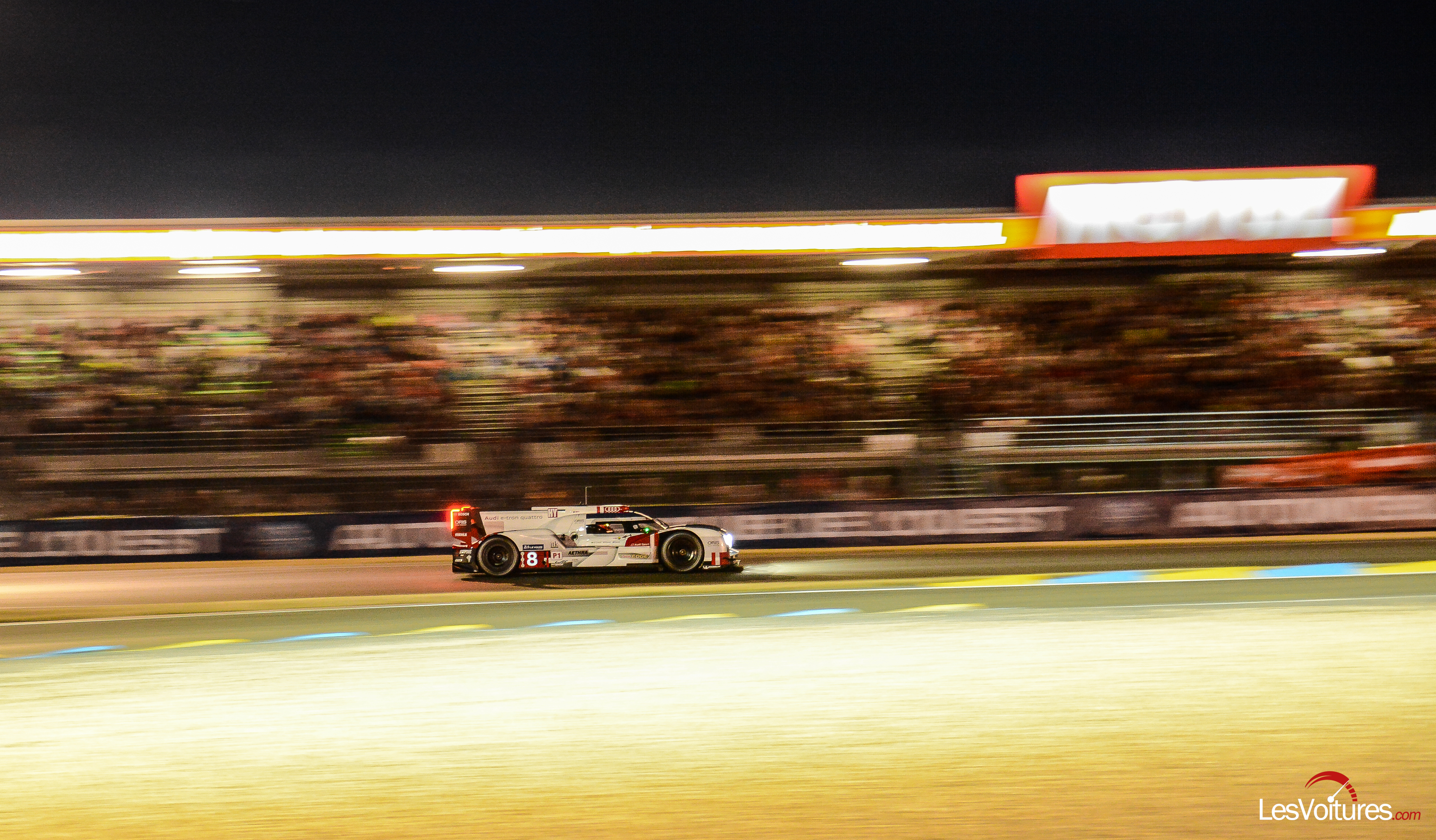 La nuit est tombée sur le Mans. A minuit, c’est une Porsche 919 Hybrid qui en remplace une autre en tête…