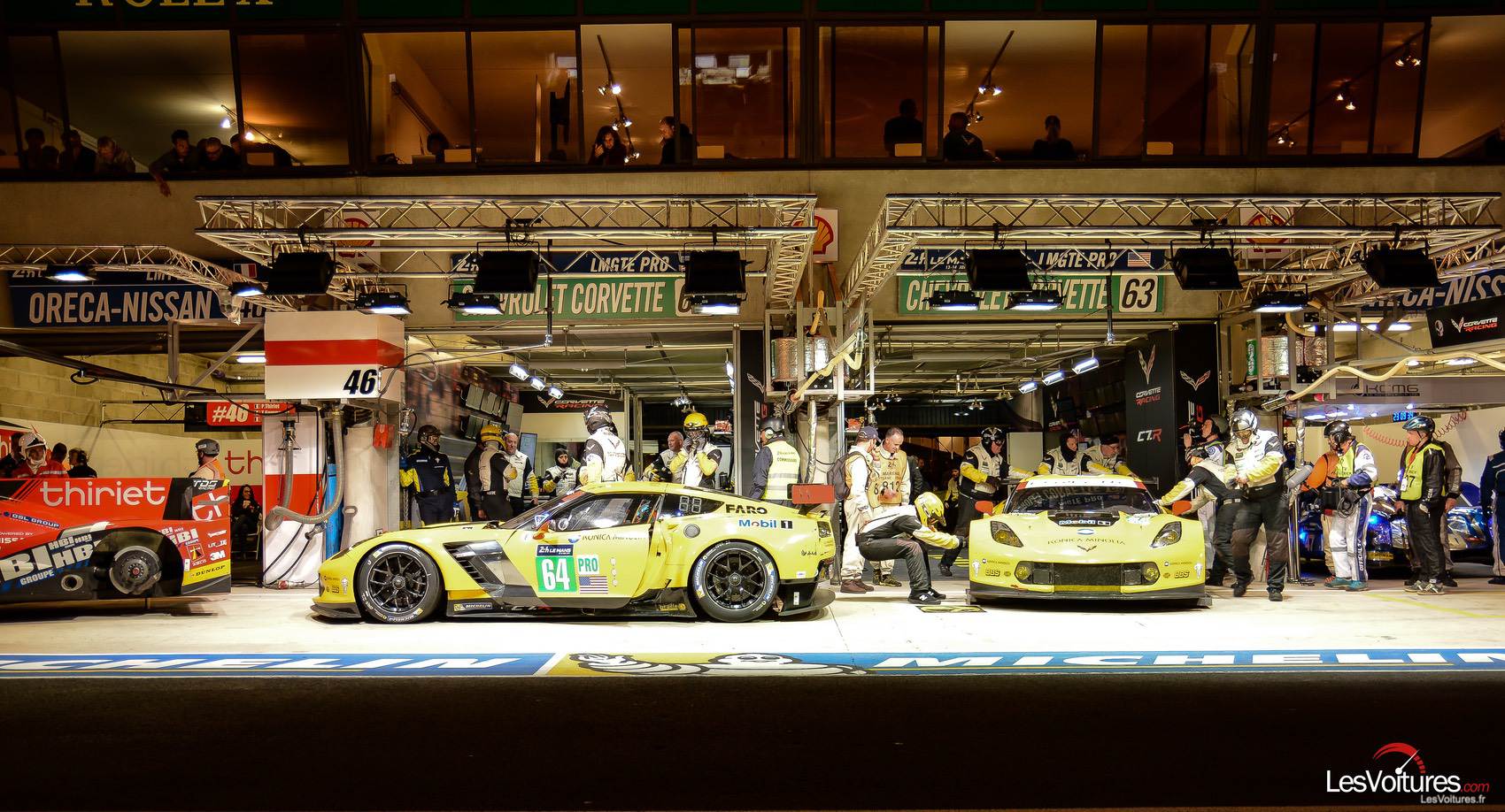 A 22h00 précises, sur une piste totalement sèche, les pilotes sont partis sur les chapeaux de roues pour profiter de la luminosité encore présente. Et très rapidement la Porsche 919 Hybrid #18 (Dumas/Jani/Lieb) s’est placée définitivement tout en haut de la feuille de temps. A noter qu’après presque une heure de séance, Gaétan Paletou (#41 – Greaves Motorsport – Gibson 015S – Nissan LM P2) s’est loupé à la chicane de Mulsanne, ce qui a provoqué l’arrêt de la séance. Juste avant c’est Treluyer qui est parti en tête-à-queue à la chicane Forza Motorsport avec l’Audi R18 e-tron quattro #7. Alors que la Gibson a été ramenée à son stand, l’Audi s’en est sortie sans encombres.