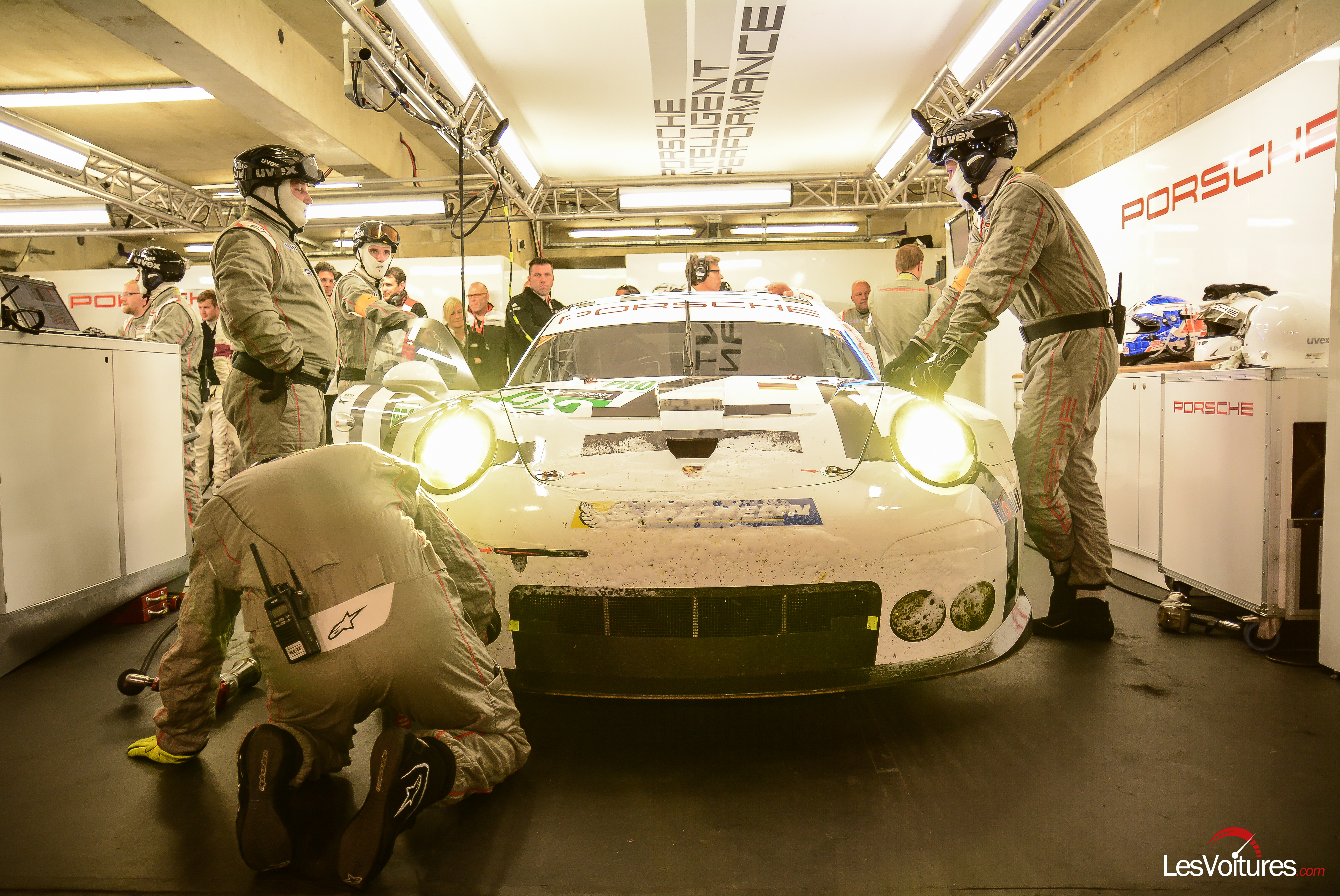 Déjà, lors de la séance d’essais libres, Porsche avait marqué les esprits avec le temps de Mark Wekker (3.21.362) réalisé avec la #17. L’Australien se jouant des caprices du ciel.