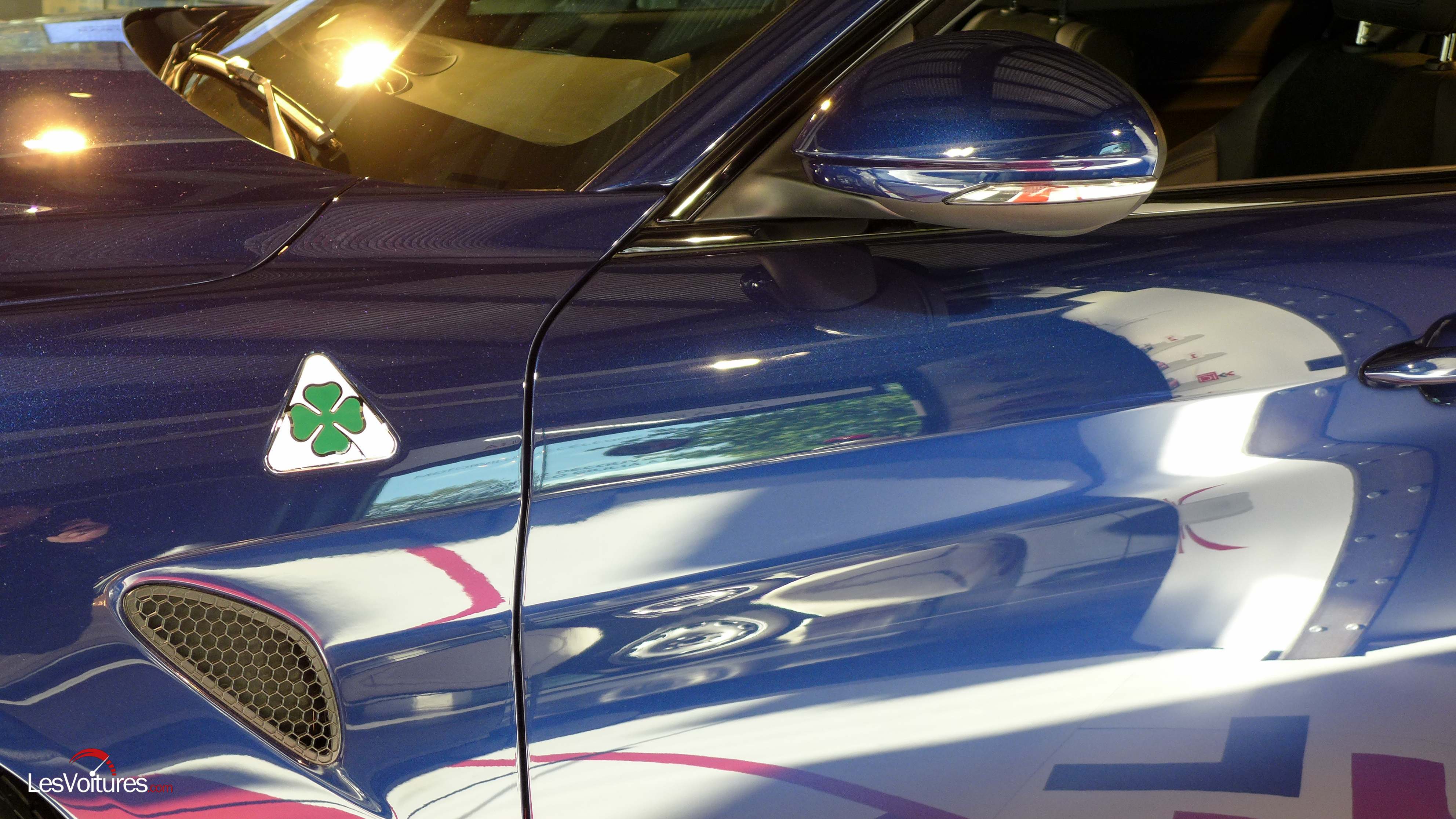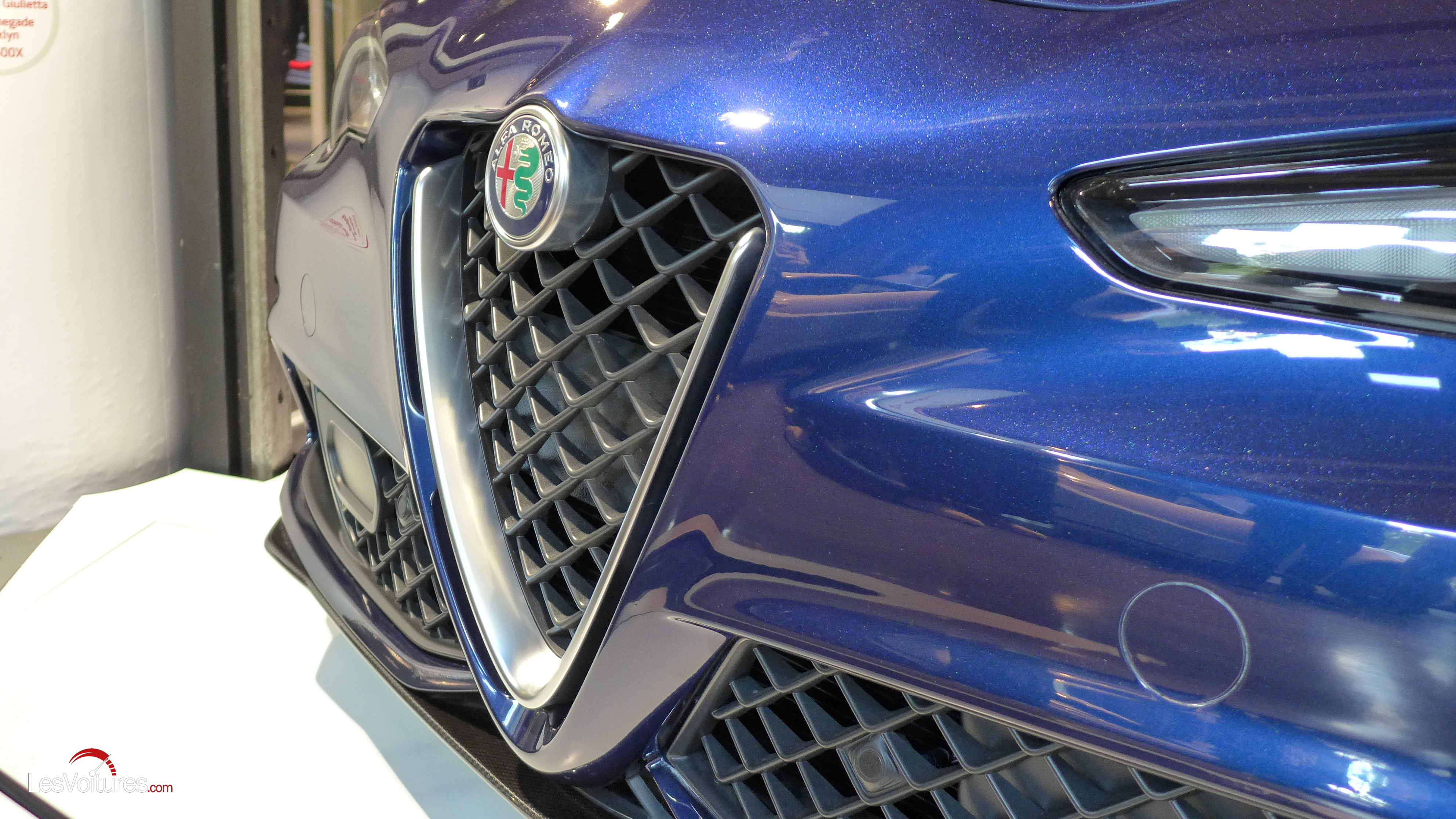 Forte de ses 510 ch issus du 6-cylindres développé par Ferrari, la Giulia Quadrifoglio Verde génère une attractivité irrésistible. Les clichés du MotorVillage Paris offrent une vision détaillée du travail réalisé sur l’aérodynamique du bolide.