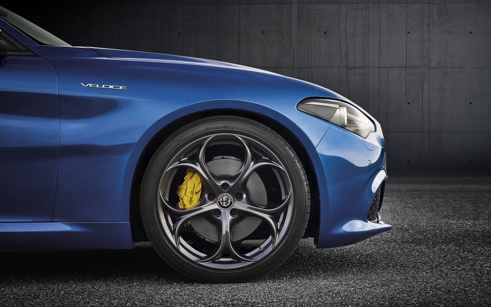 Commençons par le nouveau moteur essence qui a été conçu en aluminium, le 4-cylindres 2.0 l turbo. Il développe donc 280 chevaux (à 5250 tr/min) et 400 Nm de couple (à 2 250 tr/min). De série, la Giulia Veloce se dote d’une nouvelle transmission intégrale Q4 et de la boîte automatique à 8 rapports pour les versions essence et diesel. Quant à la cette Giulia Veloce à l’énergie gazole, elle est mue par 2.2 l turbo de 210 chevaux (à 3 500 tr/min) et 470 Nm de couple (dès 1750 tr/min). A noter qu’en situation de roulage normale, le système Q4 envoie 100% du couple à l’arrière. Et quand l’adhérence vient à manquer, les roues avant peuvent recevoir jusqu’à 60% du couple.