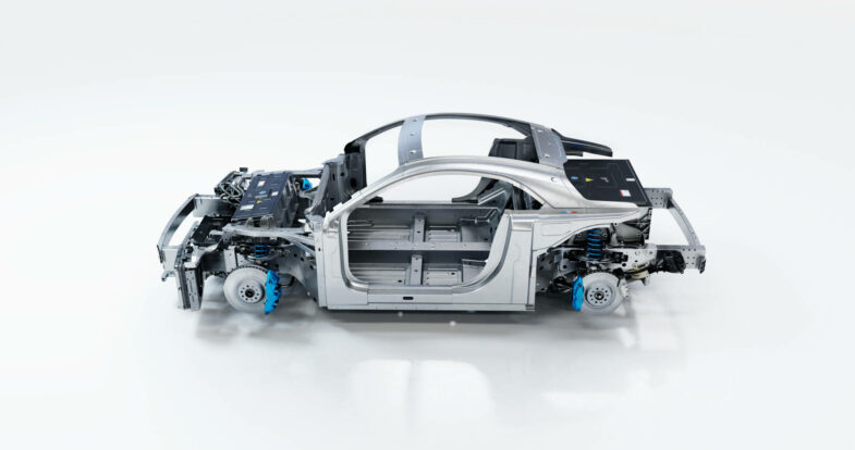 Attention, si Alpine garde un pied dans le thermique, l’essentiel des efforts se concentre sur la version 100 % électrique de l’Alpine A110. La marque promet une sportive fidèle à son ADN, malgré les contraintes inhérentes aux batteries. La plateforme APP repose sur une architecture en aluminium, pensée pour maintenir un poids contenu et une agilité comparable à l’actuelle A110. La répartition des masses vise un équilibre 40/60, et le pack de batteries est divisé en deux modules pour préserver une silhouette basse et compacte, signature de la berlinette.