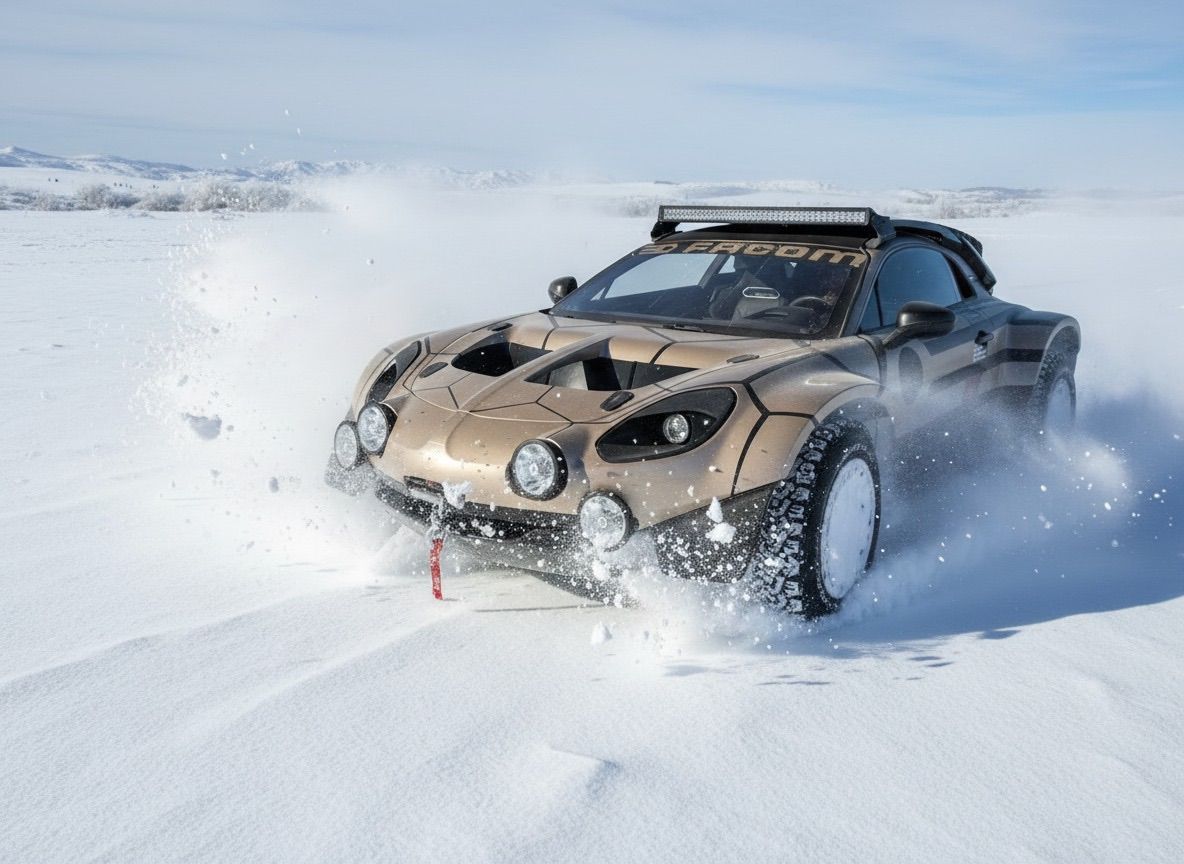 Cette vision d’une berlinette réinventée, née d’un projet personnel, est présentée comme un défi lancé aux références du segment telle que la Porsche 911 Dakar. Précisons bien que le constructeur automobile Alpine n’est pas à l’origine et ne participe pas officiellement à ce projet.