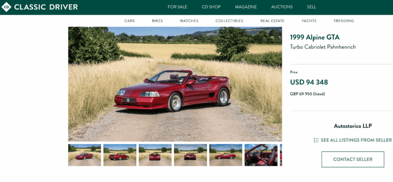 Enfin, pour tout savoir sur cette rare Alpine GTA sans toit à vendre chez Classic Driver, nous vous invitons à cliquer sur l’image située ci-dessus pour accéder à l’annonce.