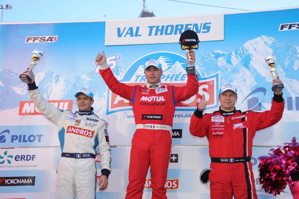 Récemment titrée comme meilleure station de ski française et mondiale aux « World Ski Awards 2013 », Val Thorens était donc le lieu parfait pour débuter en trombe la 25ème édition du Trophée Andros. Les deux journées de courses ont vu la suprématie de Jean-Philippe Dayraut (MINI Countryman). Le toulousain, tenant du titre et déjà quatre fois champion en Andros (2009, 2010, 2011 et 2013) s’est imposé dès la première journée. Lors de la 2ème finale du samedi (Course 1), il devance facilement Franck Lagorce (Renault Clio 3) qui a retrouvé immédiatement le rythme sur la glace ! Lagorce a même remporté la 1ère finale du dimanche (Course 2). Dayraut ayant remis ça le dimanche avec la victoire lors de la 2ème finale.