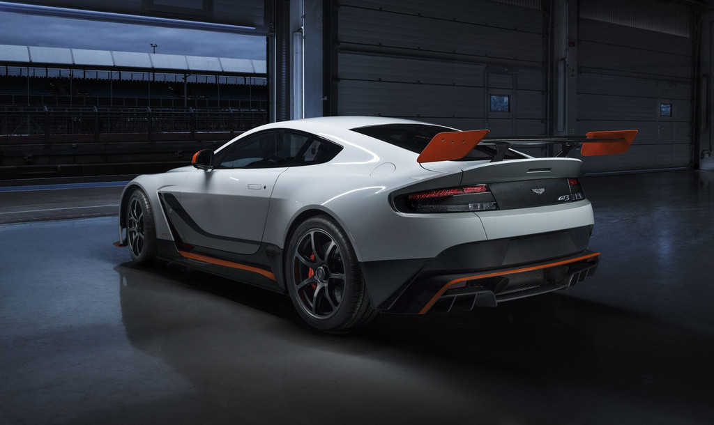 L’aérodynamisme marque bien entendu le design de la bête sous tous ses aspects. Une imposante prise d’air capot en V surplombe la calandre et marque le caractère ultra-sportif du véhicule. Le spoiler avant, prolongé par des bas de caisse aussi aiguisés que des lames de rasoir, donne des airs de Formule 1 à la Vantage GT3. Mais c’est la vue de son arrière-train qui émoustillera le plus. Son aileron arrière proéminent, son diffuseur acéré et sa double sortie d’échappement achèvent le tableau magnifique d’une sportive admirablement réussie. Soulignons enfin que sa robe bi-teinte met avantageusement en valeur tous ces appendices en fibre de carbone.