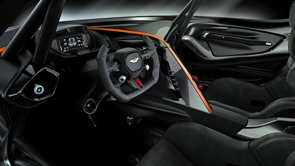 Profilée comme un missile, la Vulcan est immédiatement assimilable à la catégorie des voitures de course. La ligne naissant à l’avant du capot se prolonge harmonieusement jusqu’à l’aileron arrière démesuré. Les passages de roues arrière sont élargis et viennent muscler la silhouette générale. Une deuxième ligne prend naissance dans le becquet avant, aiguisé comme une lame de rasoir, et se prolonge dans les bas de caisse pour se terminer avec le monstrueux diffuseur arrière. Si cet « Exocet à quatre roues » devait se trouver une incarnation dans un personnage de fiction, Hulk serait vraisemblablement approprié ! Si l’agent secret de sa Majesté, James Bond 007, roule au cinéma en Aston Martin DB10, The Avengers pourraient très bien rouler en Vulcan !