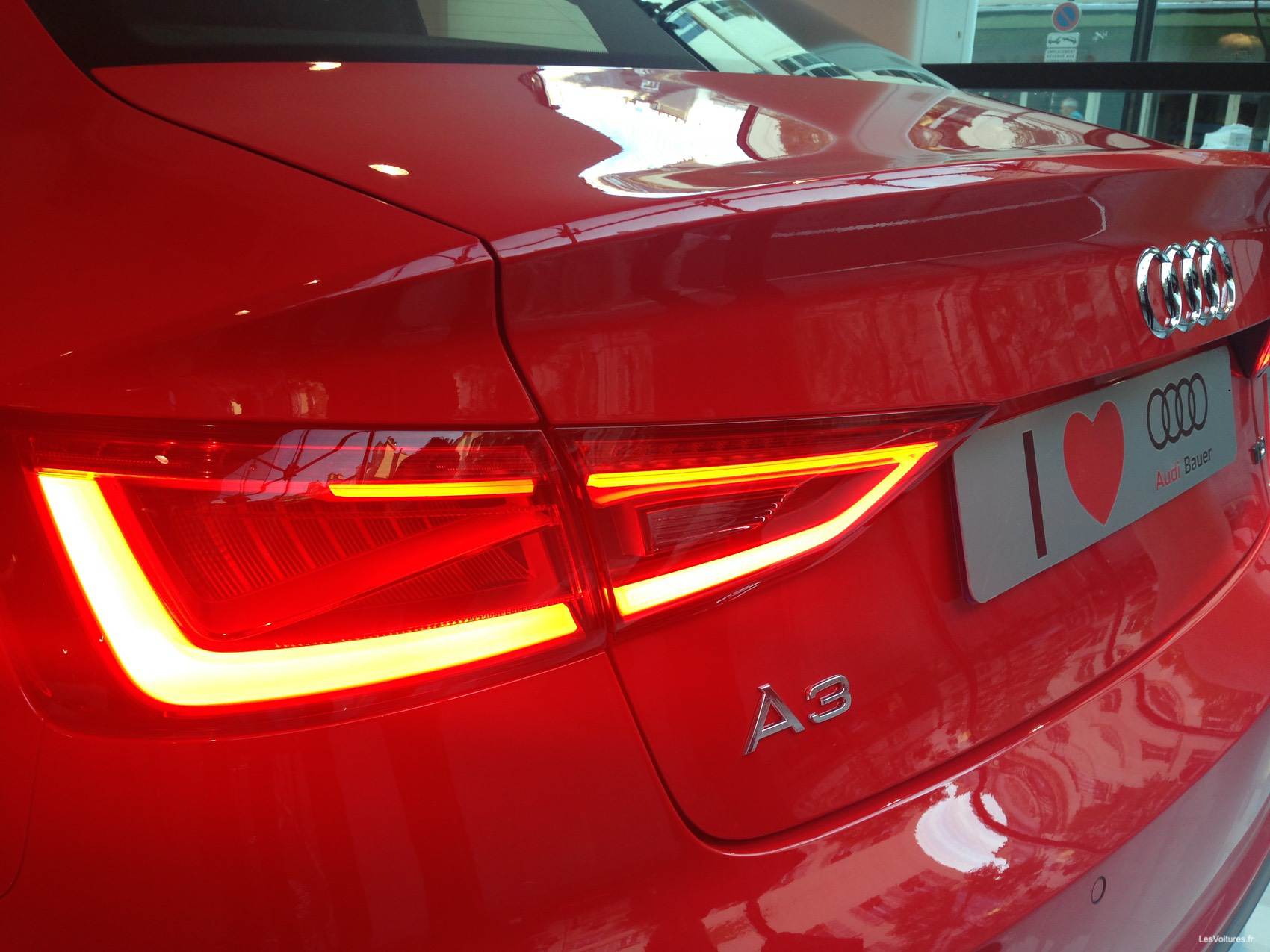 La version présentée à Paris arbore une magnifique robe rouge misano, le Pack extérieur S Line et un toit ouvrant panoramique. Les nouveaux feux arrière sont particulièrement réussis et affine encore plus la A3 berline.