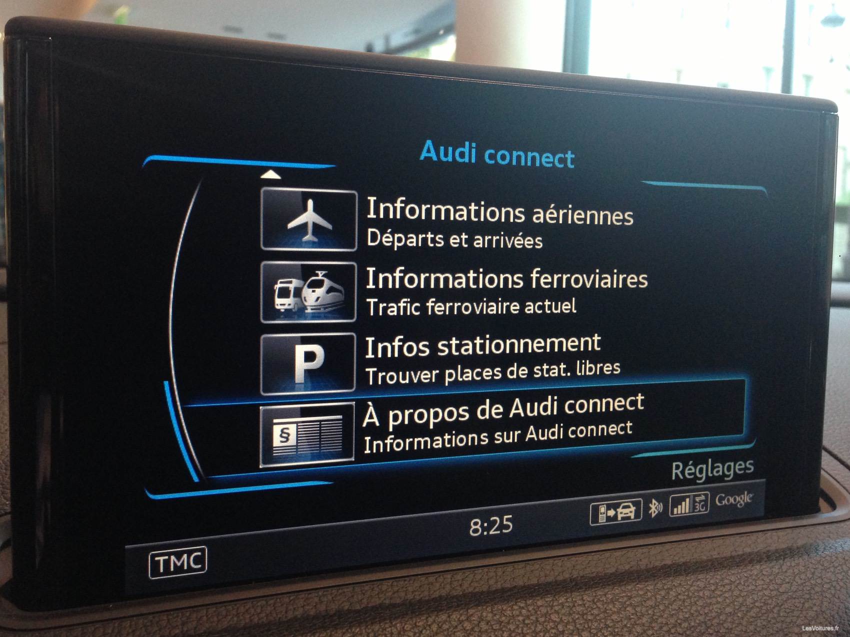 A l’intérieur, la finition est parfaite avec entre autres la présence du Pack Aluminium, du volant avec méplat. Le nouveau système MMI offre un panel de fonctionnalités impressionnant. Hormis un GPS haut de gamme avec vue 3D de Google Earth, ce dispositif très avancé technologiquement vous facilitera votre quotidien. Intuitif à souhait, il permet notamment de vous connecter à vos réseaux sociaux, de repérer une place de parking libre tout en communiquant le tarif de stationnement. Hyper complet, il informe également de la météo, des évènements culturels tout en gérant les différentes sources audio.