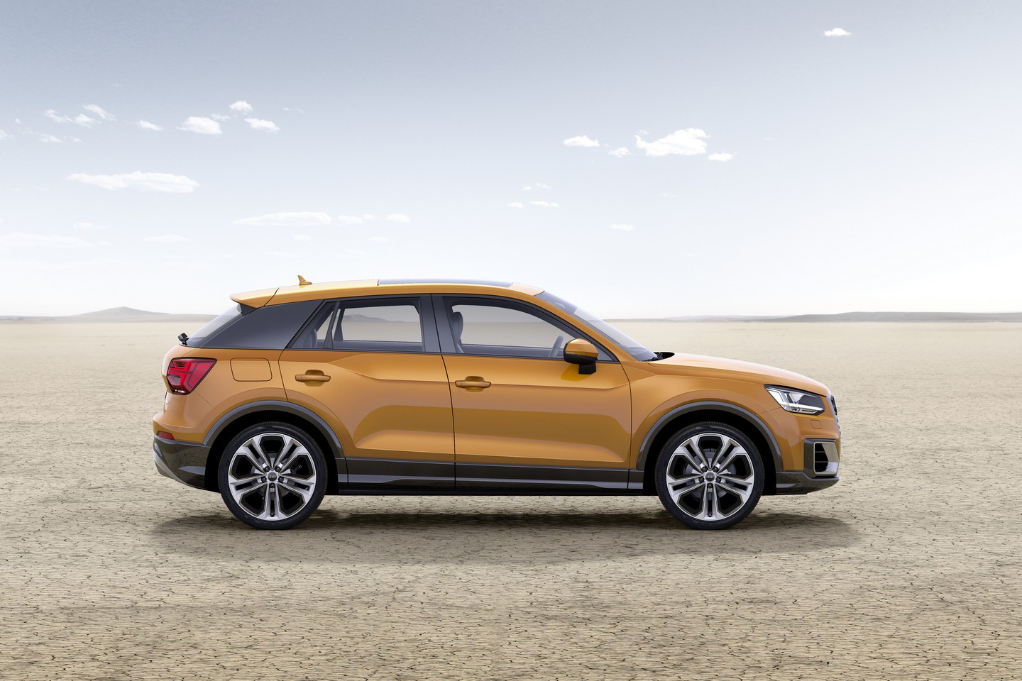 Le design de l’Audi Q2 reprend logiquement la calandre Singleframe octogonale caractéristique d’Audi. Cette calandre est bordée de deux larges entrées d’air qui donnent du caractère au visage de ce Q2. La ligne de toit fuyante ferait penser à celle du Range Rover Evoque, tandis que l’utilisation d’aluminium sur le pavillon de toit, repris sur l’extracteur arrière, donne un look sportif à l’auto.