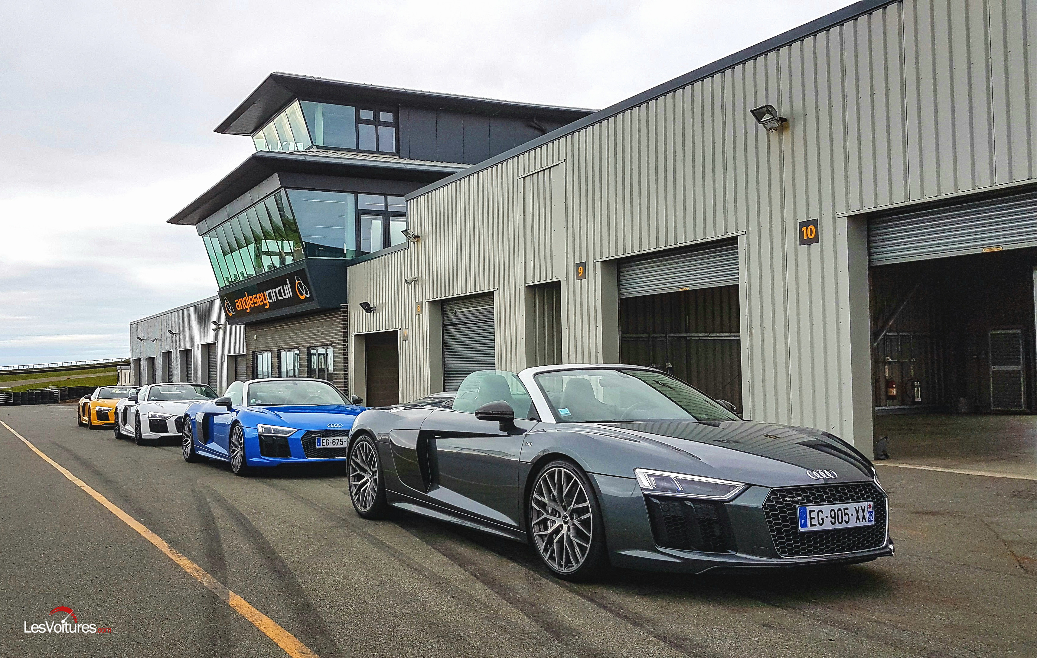 C’est sur la tracé « sévère » du circuit d’Anglesey que cette nouvelle Audi R8 Spyder a commencé à nous impressionner. Le son du V10, rauque et « mal élevé » en dessous de 4 000 tr/mn finit par sonner comme une F1 des années 90 lorsque l’on approche les 6 000 tr/min.