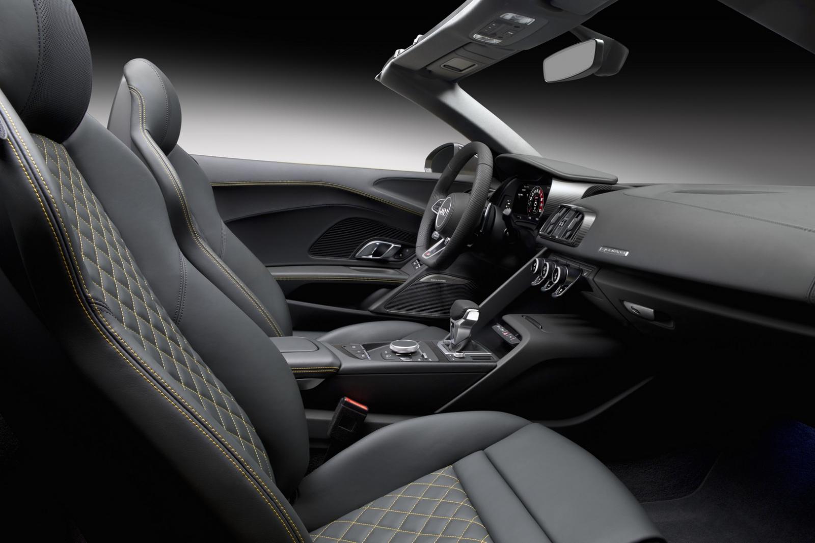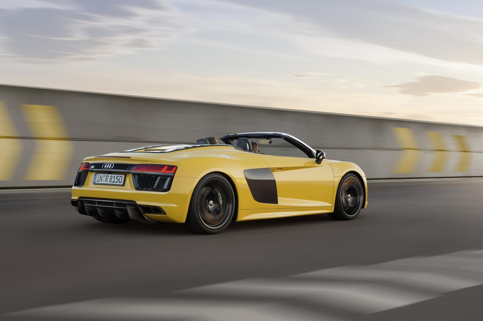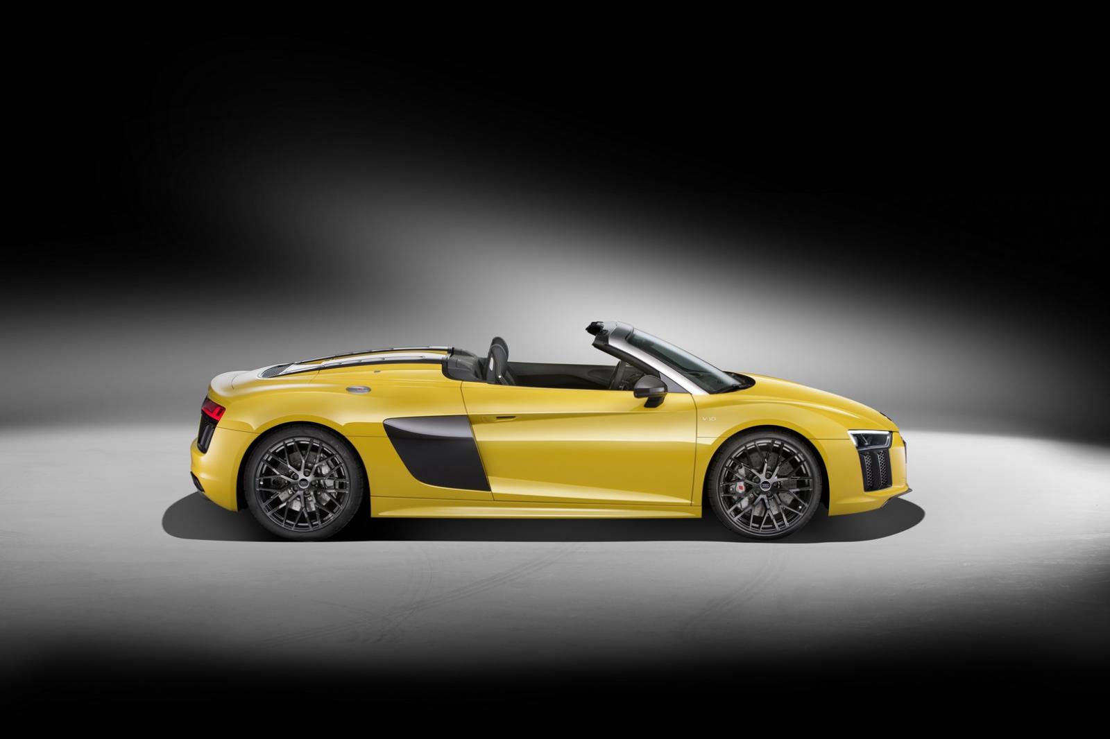Sous son capot, la R8 Spyder 2016 embarque le V10 de 5.2 l atmosphérique qui développe 540 chevaux. Cette configuration est la moins puissante du V10 FSI. Chiffre identique pour le couple envoyé au quatre roues. Du côté des performances, Audi annonce un 0 à 100 km/h abattu en 3,6 s et une « V Max » de 318 km/h.