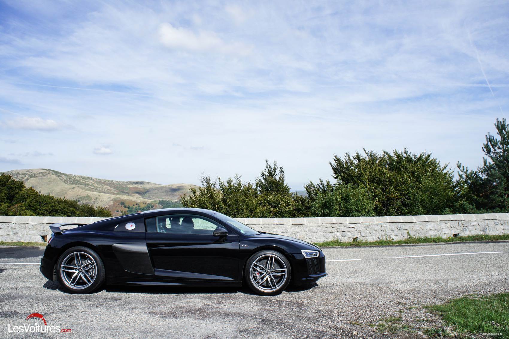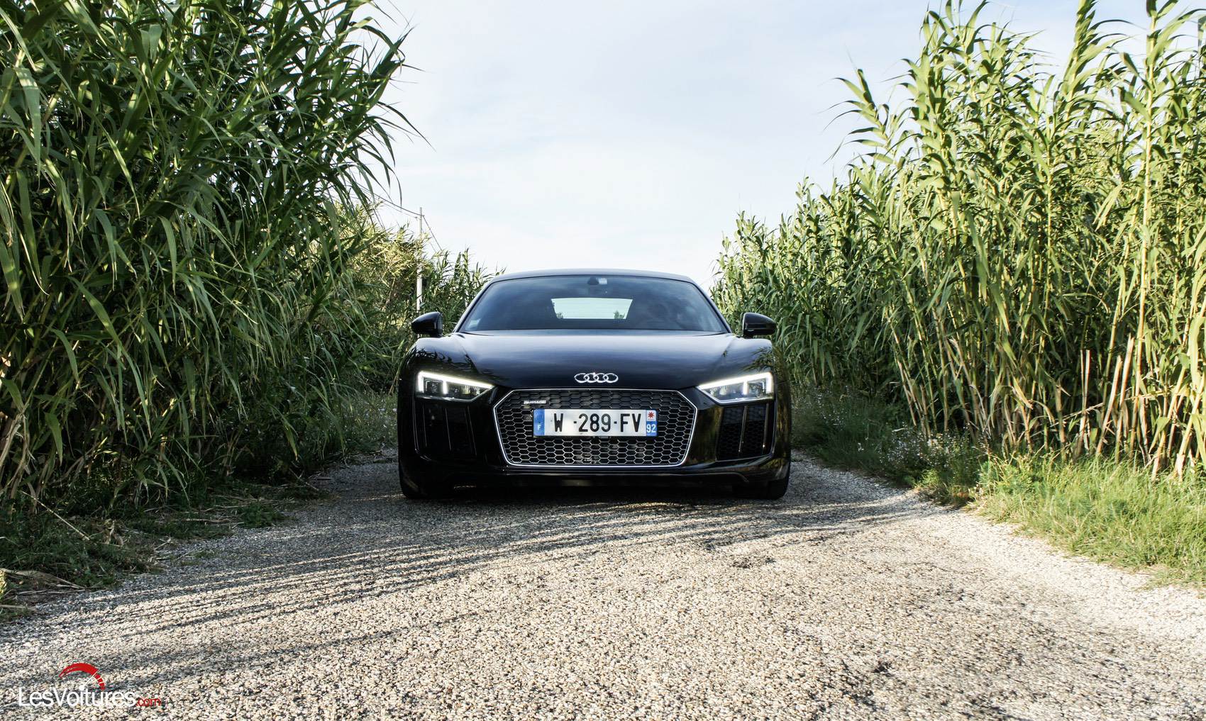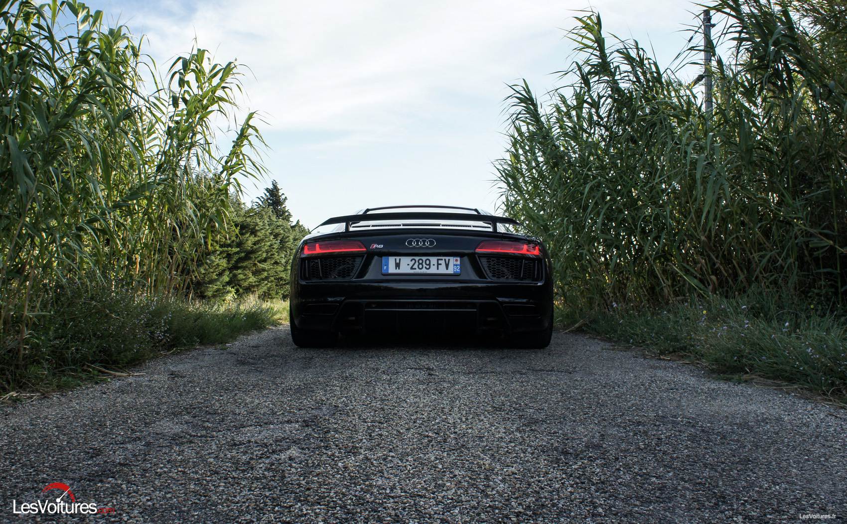 La nouvelle version de la R8 V10 plus reprend donc ce qui a fait le succès de sa devancière : une facilité de prise en main et une efficacité inégalées. Elle ajoute cependant une grande touche de radicalité à tout cela, pour en faire une véritable Supercar. L’ancienne version de l’Audi R8 se positionnait comme la « Supercar accessible, » avec un prix de base inférieur aux 911 Turbo et autres Lamborghini ou Ferrari. La R8 V10 plus commence à 199 000 €, tandis que notre modèle était facturé 213 020 € avec ses options. Soit le prix d’une Lamborghini Huracán LP 610-4 (logique en même temps), ou encore le prix d’une Ferrari 458 Italia. Cette nouvelle version de la R8 délaisse donc son acien statut pour véritablement entrer dans la cour des grands. Mais au vu de l’arsenal des technologies qui ont été déployées, de l’efficacité et du look du véhicule, on ne peut pas se permettre de le reprocher à Audi. Les hommes et femmes les plus sobres, ne désirant pas forcément qu’on leur colle une image de frimeur ont désormais leur vrai Supercar, leur permettant de rouler vite en volant sous les radars… Concluons en musique avec le son de l’Audi R8 V10 plus !