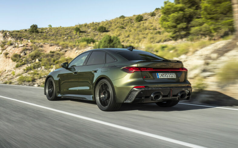 Le 0 à 100 km/h est annoncé en 3,6 s, tandis que l’autonomie en mode 100 % électrique dépasse 80 km grâce à une batterie de 22 kWh nets (25,9 kWh bruts). La recharge AC à 11 kW permet de faire le plein en 2 h 30. Audi a particulièrement travaillé le refroidissement, maintenant la batterie à 20 °C pour garantir des performances constantes, même en mode « RS Torque Gear », le plus extrême. Quant à la transmission intégrale « Quattro », elle s’appuie sur une boîte « Tiptronic » à 8 rapports spécialement adaptée à la puissance combinée.