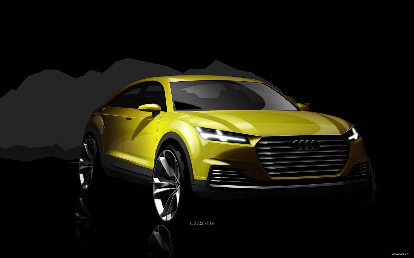 4,39 mètres de large, 1,85 mètre de largeur pour un empattement de 2,63 mètres, avec ces dimensions le coupé TT se transforme en baroudeur même si sa hauteur (1,53 mètre) est plus faible que l’Audi Q3 de 8 centimètres. Grâce à ce dernier chiffre la TT conserve sa sportivité légendaire, marquée également par la couleur jaune de l’étude de style Offroad Concept.