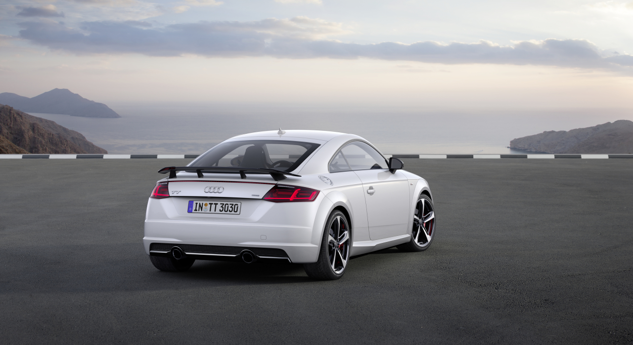 Un aileron arrière fixe est également au programme des cette série. Pour le reste, le coupé et le roadster profitent de la calandre Singleframe, de lames de spoiler avant, de rétroviseurs extérieurs et d’un diffuseur arrière en finition noire. Quant aux sorties d’échappement, elles disposent d’une finition en noir chromé. A l’intérieur, et comme sur l’Audi TT, l’Audi virtual cockpit est repris de série.