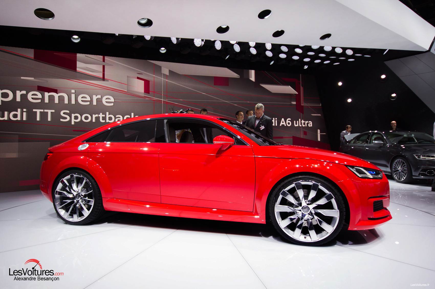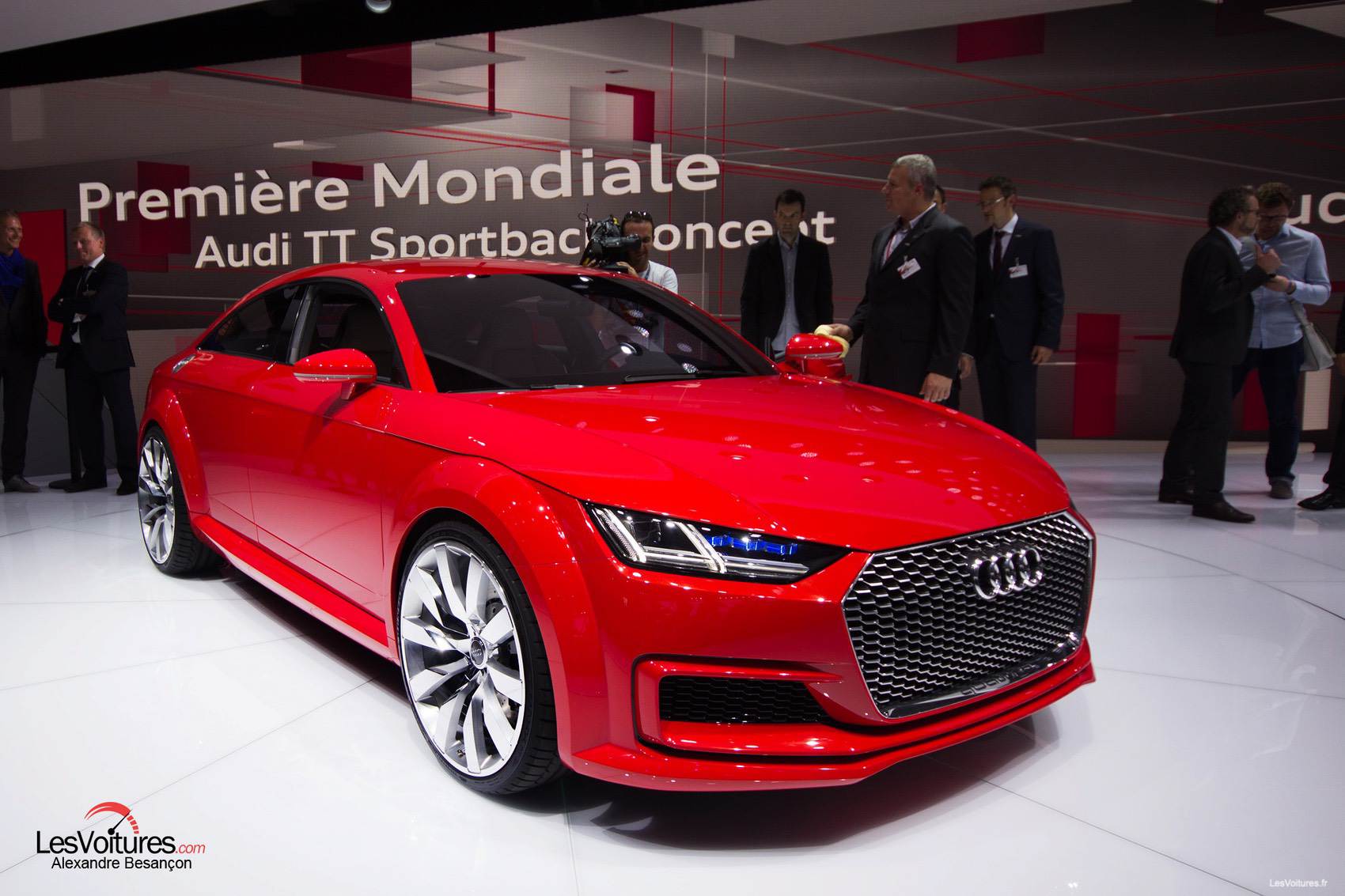 La principale surprise d’Audi au Mondial de l’Automobile, la voici : le TT Sportback Concept. Après le TT Offroad Concept, un TT SUV, c’est au tour du TT coupé de passer au banc d’essai « famille ». Prenez un TT de troisième génération, étirez le de 30 centimètres tout en y adaptant une chute de pavillon sans fin comme sur une A7 Sportback, ajoutez-y deux portes et vous obtiendrez le TT Sportback Concept.