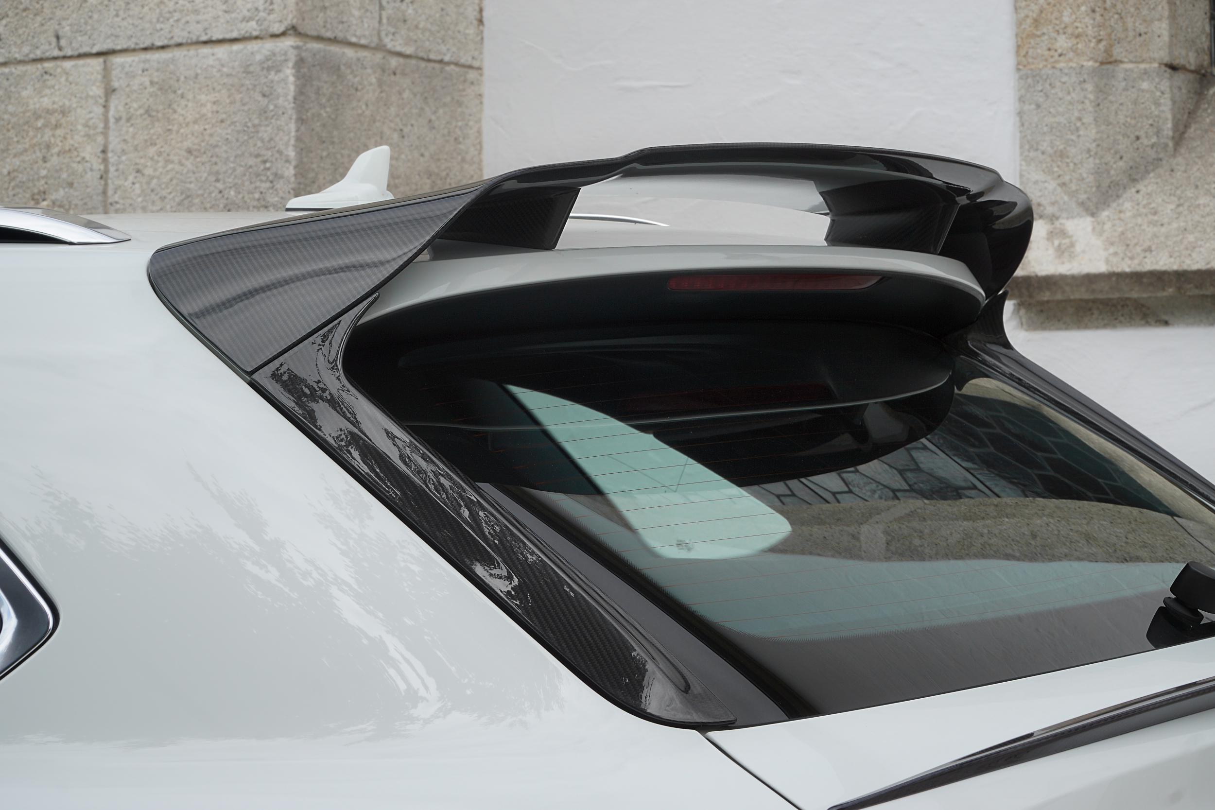 Ainsi, on trouve principalement au programme des modifications esthétiques, une grille de calandre exclusive, un bouclier avant agressif avec ailettes, de nouvelles ailes plus larges, des bas de caisse hyper travaillés pour ne pas dire autre chose, un capot en carbone et un bouclier arrière qui intègre un diffuseur et une quadruple sortie d’échappement. A cela s’ajoutent un aileron arrière et des jantes de 23″, etc…