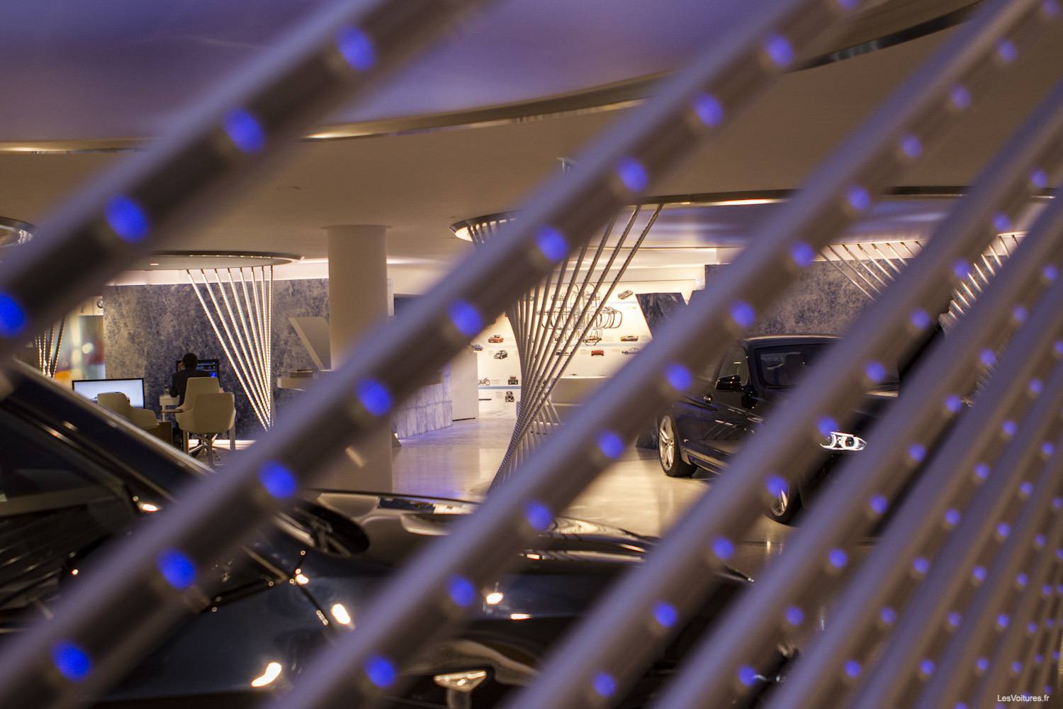 Le « Central Plaza » accueille quatre voitures exposées dans un univers brisant tous les codes. Eric Carlson, le célèbre architecte, qui à également créer le « brand store » Louis Vuitton, a su jouer avec la faible hauteur sous plafond et les matériaux, comme le sol en résine, pour proposer une mise en avant des voitures inédite et futuriste. Des Vortex composés de tiges en aluminium incrustées de LED enlacent de lumière les autos. Le visiteur interagit indirectement sur ces effets visuels par l’intermédiaire de capteurs de mouvements et de présence. Les Vortex nous ramènent à Munich et au double cône du BMW Welt (le « monde de BMW » dans la langue de Goethe), centre d’exposition emblématique de la firme à l’hélice.
