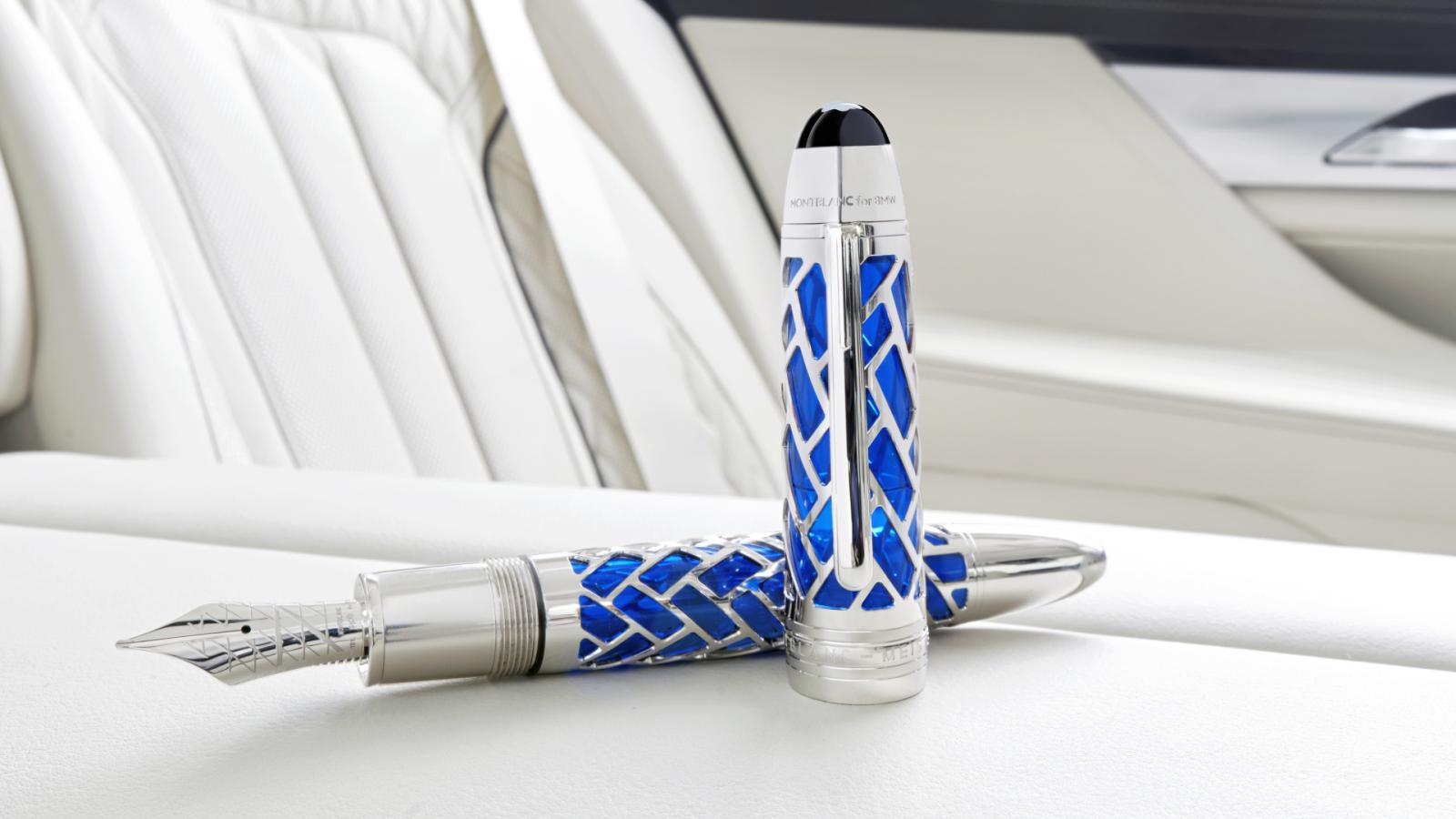 La sellerie cuir Mérinos « Smoke White » soutenue par un ciel de pavillon en alcantara de la même teinte et renforcée par quelques éléments noirs, ouvre les portes d’une dimension où le luxe est prédominant. Avec de tels attributs, la Série 7 Centennial Edition ne peut plus cacher son jeu, l’extravagance malgré tout classique prend une place considérable au sein de l’habitacle. De manière à inciter sa clientèle à signer un petit autographe au coin d’un chèque afin d’acquérir cette voiture « Anniversaire », BMW offre un style Montblanc Meisterstück personnalisé et tout à fait en accord avec la teinte de la carrosserie et le dessin de la sellerie.