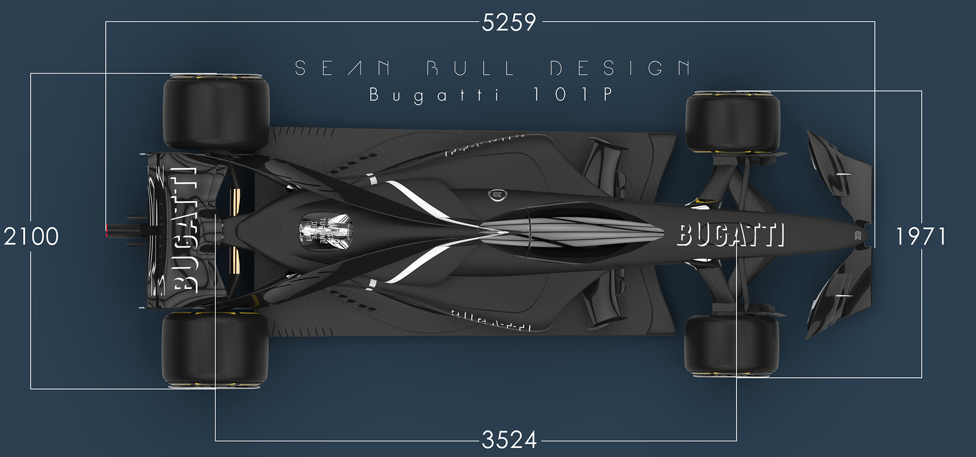 La Scuderia Ferrari et le Red Bull Racing l’ont aussi imaginé, cette F1 du futur… Mais la plus belle création virtuelle nous vient de Sean Bull, un graphiste britannique. Il vient de dévoiler une monoplace virtuelle et elle est « presque » française, voici la Bugatti 101P – F1 2020 Concept.
