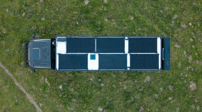 L’autonomie énergétique est l’un des points forts du « roadtrailer », ou camping-car de l’extrême, Kodiak. Le Kodiak embarque une station électrique Victron comprenant 3 000 W de panneaux solaires, des batteries lithium de 600 Ah et un groupe électrogène de 6 000 W. À cela s’ajoutent un système intelligent de gestion de l’eau, une climatisation réversible et une connectivité satellite, permettant de vivre plusieurs semaines en totale indépendance.