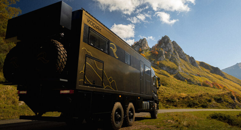 Sur le plan technique, le Kodiak, long de 11 m, repose sur un châssis Renault Trucks Série K 6×6 doté d’un moteur de 440 ch. Cette base robuste lui confère des capacités de franchissement hors normes, adaptées aux terrains les plus hostiles. Sa cellule habitable de 18 m², ultra-isolée, se présente comme une véritable suite nomade. L’intérieur, inspiré du nautisme, est entièrement personnalisable et offre un niveau de confort rarement atteint dans ce segment.