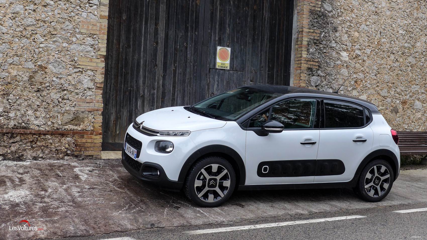 Un autre focus, sur les tarifs de la citadine, nous parait indispensable. Ils sont en effet en baisse ! En essence, la C3 s’offre à partir de 12 950 € (PureTech 68 BVM Live). Et notre PureTech 110 S&S BVM Shine, la plus haut de gamme, s’affiche à partir de 18 700 €. En diesel, les BlueHDi 75 S&S et 110 S&S sont disponibles respectivement à partir de 15 550 € ( BlueHDi 75 S&S BVM Live) et 18 300 € ( BlueHDi 100 S&S BVM Feel). Le rapport prestation/prix concocté par Citroën représente une « force de frappe » indéniable pour aller chercher les Renault Clio 4 et Peugeot 208.