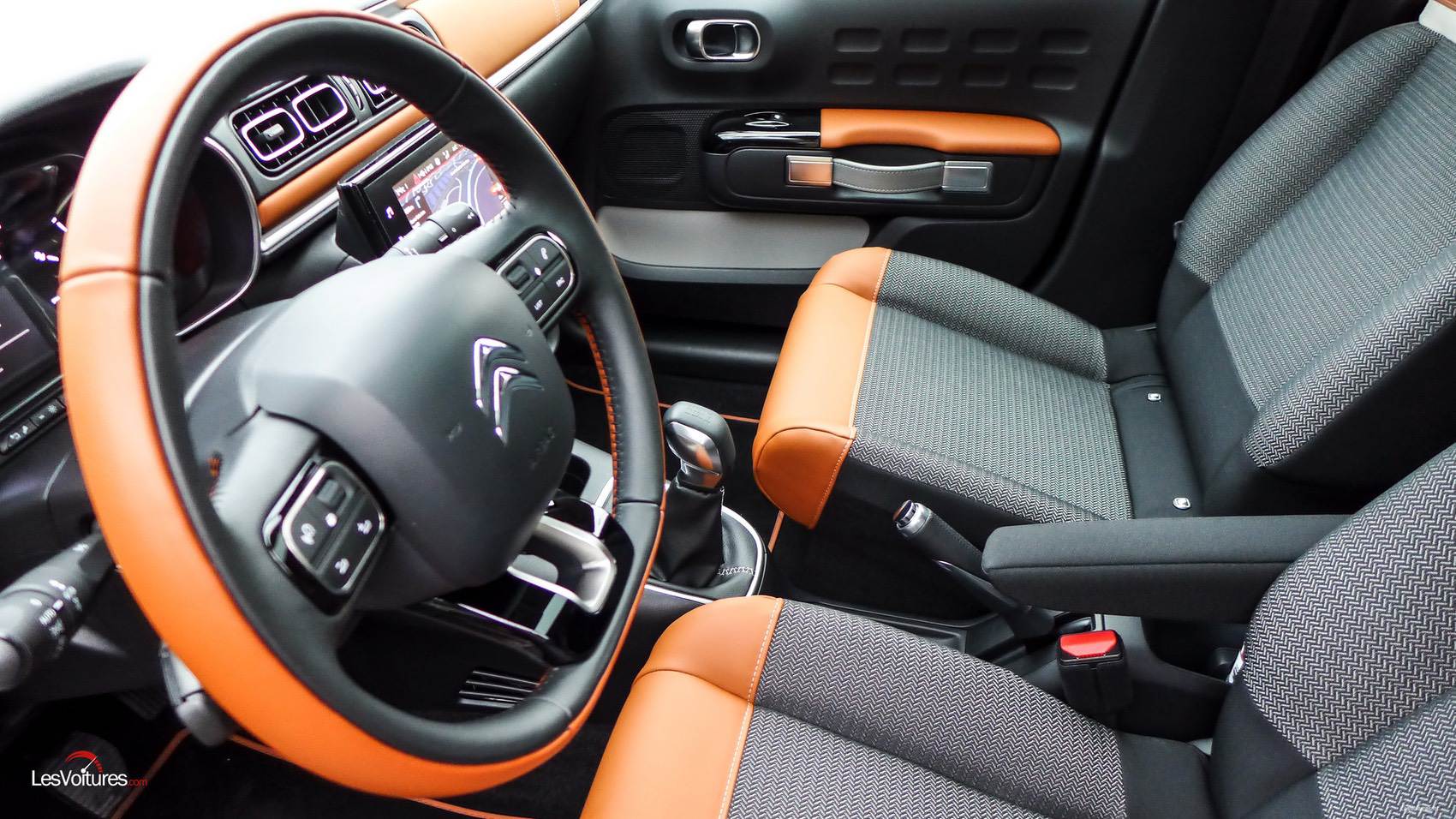 En ouvrant la porte conducteur de la C3 « new generation », on oublie instantanément la simplicité et la faible qualité des éléments de la précédente version, la révolution est totale ! On retrouve même l’esprit du concept CXPERIENCE avec des tissus joliment confectionnés. La planche de bord droite développe un sentiment d’espace impressionnant. Que ce soit à l’avant ou à l’arrière, l’habitabilité un l’un des points forts de la C3. Son volume de chargement de 300 l est l’un des meilleurs de sa catégorie. Les commandes tombent facilement sous la main. Seul bémol, le choix de plastiques trop durs sur de trop grandes surfaces. D’autres aspects fort agréables nous font vite passer à autre chose, à savoir l’instrumentation d’une lisibilité excellente, les multiples rangements et les poignées de portières très authentiques. Sans oublier l’assise des sièges au confort digne d’un canapé.