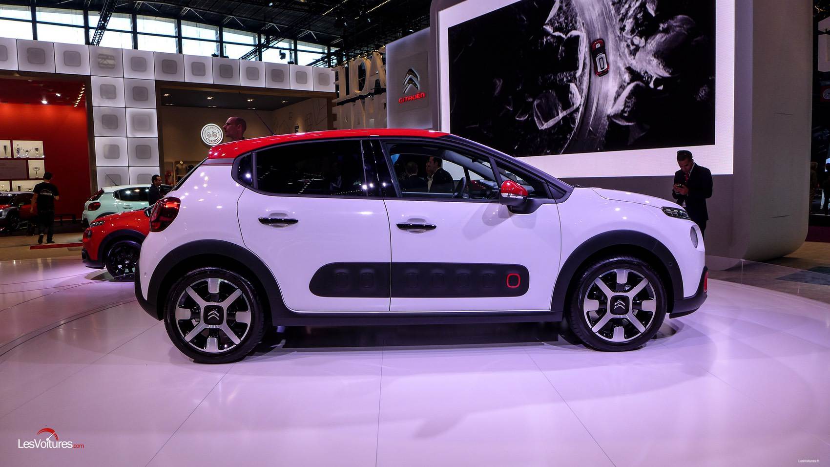 Petite mais costaud grâce à son nouveau look à Airbump, la nouvelle Citroën C3 est loin d’être discrète sur le stand Citroën du Mondial de l’Automobile. Elle peut se le permettre car son style est aussi original qu’attractif.