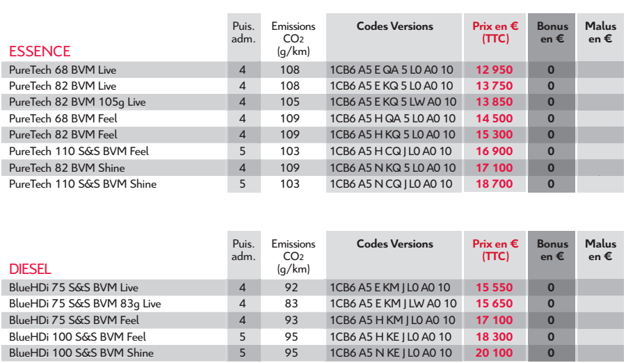 Dévoilée en juin dernier, c’est bien à Paris que la citadine aux chevrons s’offre son premier bain de foule en public. Elle sera proposée avec les 3-cylindres essence PureTech : 0.9 l de 68 chevaux, 1.2 l de 82 ch et 110 ch. En diesel, c’est le 4-cylindres 1.6 l BlueHDi (75 et 100 chevaux) qui officiera. A noter que la boîte de vitesse automatique EAT6 (pour 6 rapports) sera présente en option.