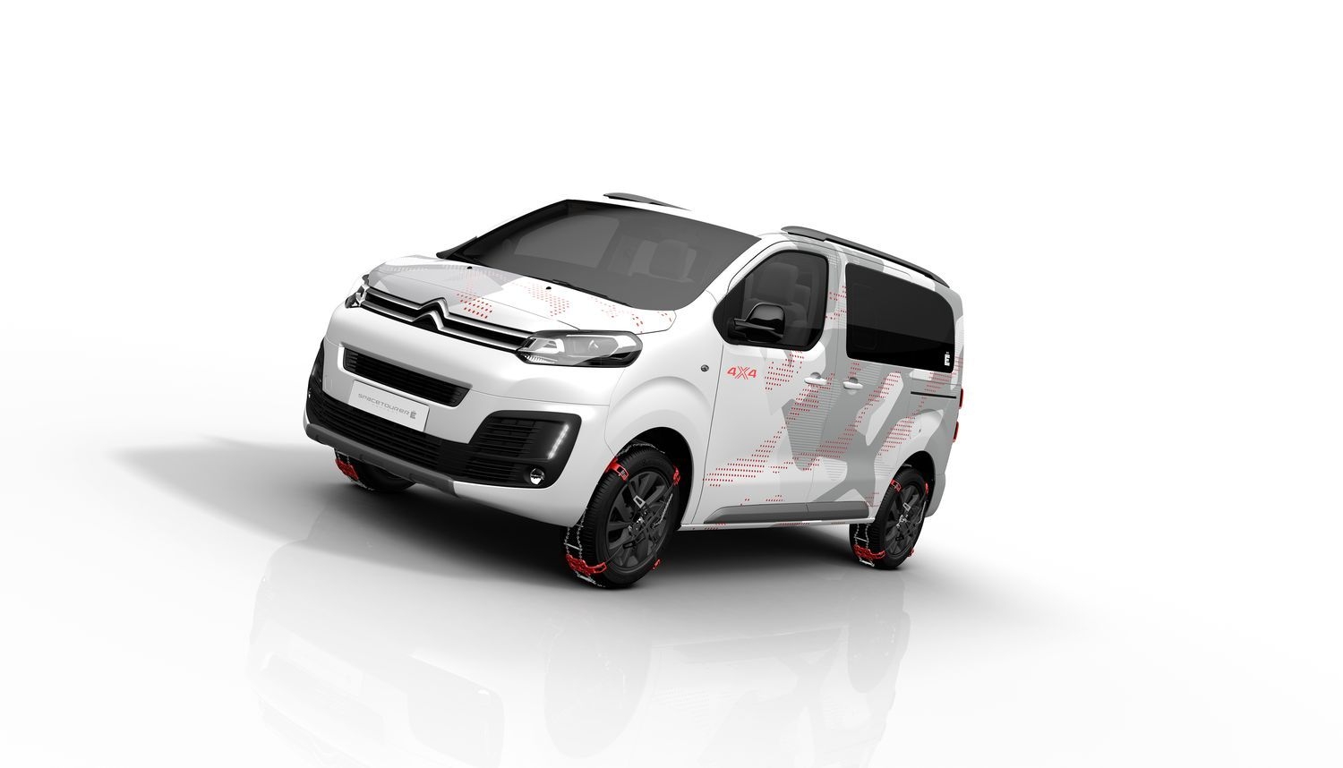 Au programme de ce concept, on trouve des sabots de protection à l’avant et à l’arrière, des barres de toit et des pneus qui ont été équipés de chaînes. Le plus intéressant est que ce SpaceTourer a été doté d’une transmission intégrale. Le système est fourni par le spécialiste en la matière et partenaire de la marque française : Dangel. Pour mieux « attaquer » les pentes enneigées, la garde de cet utilitaire gagne 60 mm. Le concept-car est mu par un bloc diesel de 150 ch et la boîte de vitesses est manuelle à 6 rapports.