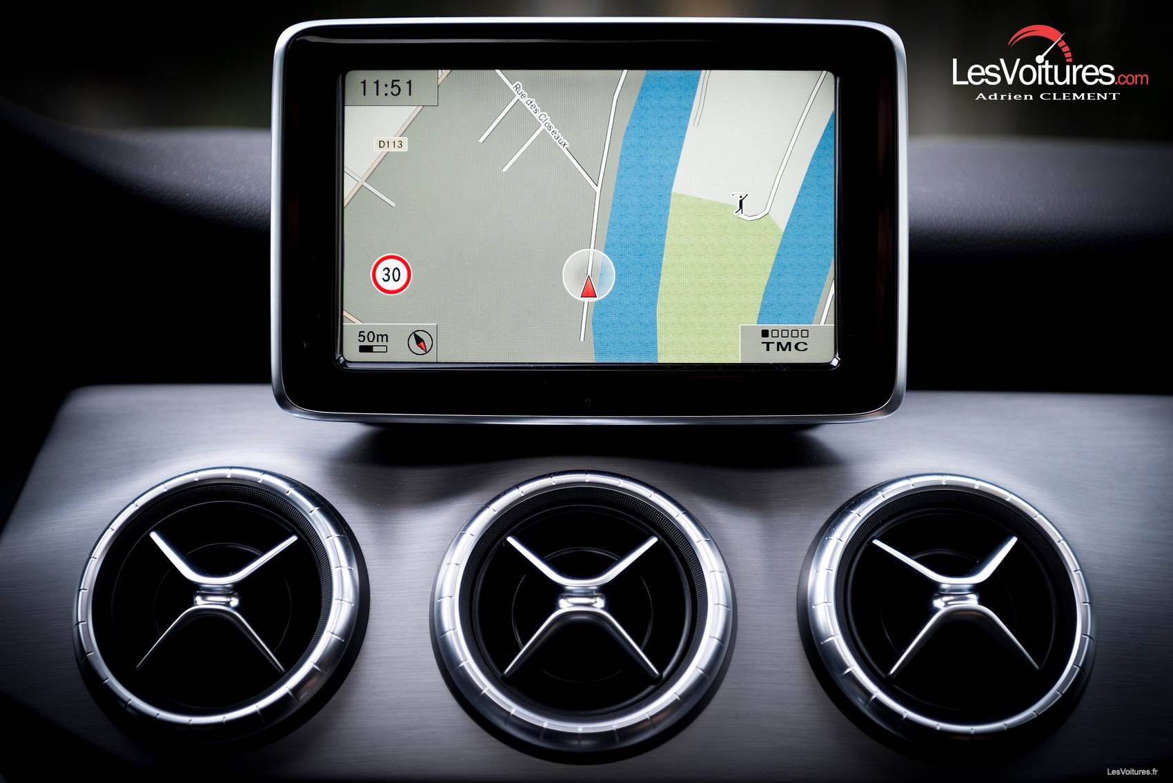 Du côté du tarif, la CLA 220 CDI Fascination se place toujours dans des prix élevés, en rapport avec sa qualité. Le ticket d’entrée est de 45 400,00 €. Notre CLA d’essai diesel arbore cependant une superbe teinte argent polaire métallisée qui n’est pas sans rappeler celles des « Flèches d’Argent » (option : 800,00 €). Et qui dit jeunes aux moyens conséquents dit aussi option média avec l’interface (USB, iPod, auxiliaire) facturée 250,00 €. Les 2 400,00 € du très complet et « High-tech » système multimédia nous semblent indispensables à débourser pour un confort optimal car il comprend, la commande vocale « LINGUATRONIC », la navigation 3D avec mise à jour automatique, le « Live Traffic » inclus pendant 3 ans, l’avertisseur de limitation de vitesse, un port de carte SD, le lecteur DVD et la possibilité de surfer grâce au navigateur Internet (à l’arrêt s’il vous plait).