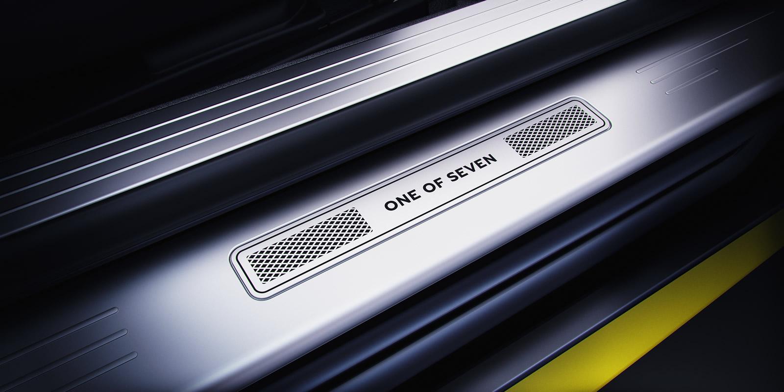 De l’extérieur, la peinture donne le ton avec deux couleurs aubergine harmonieusement mélangées, Hallmark et Onyx chrome, subtilement rehaussées d’un liseret jaune sur le bas de la carrosserie. A l’intérieur, on retrouve très clairement la signature Breitling, les sièges sont de la même teinte que l’extérieur, personnalisés de graphiques sur l’appui tête représentant la voiture et le jet qui y est associé. Sur la planche de bord en fibre de carbone est également apposée une image des sept jets en formation de vol Avenger.