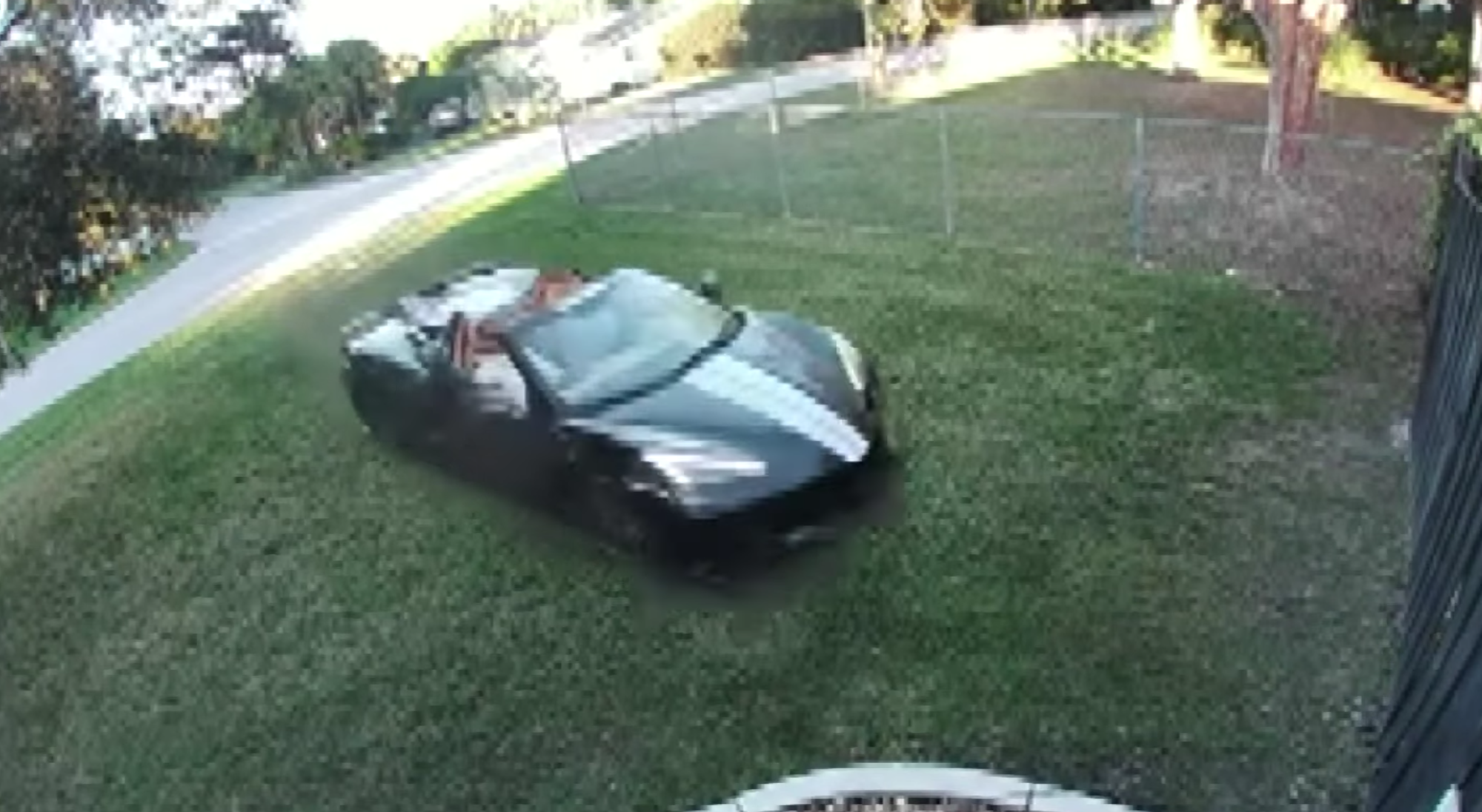 Selon les images issues d’une caméra de surveillance installée devant la maison, la Corvette C8 circulait vers le sud sur Southwest 88th Court lorsqu’elle a abordé une intersection sans jamais ralentir. La supercar a alors franchi le trottoir, coupé en diagonale le jardin de la propriété, avant de venir percuter violemment une clôture en bois, puis d’être projetée contre le bateau familial, selon le média américain Carscoops. La vidéo de cet accident a été diffusée largement sur les chaînes TV américaines.