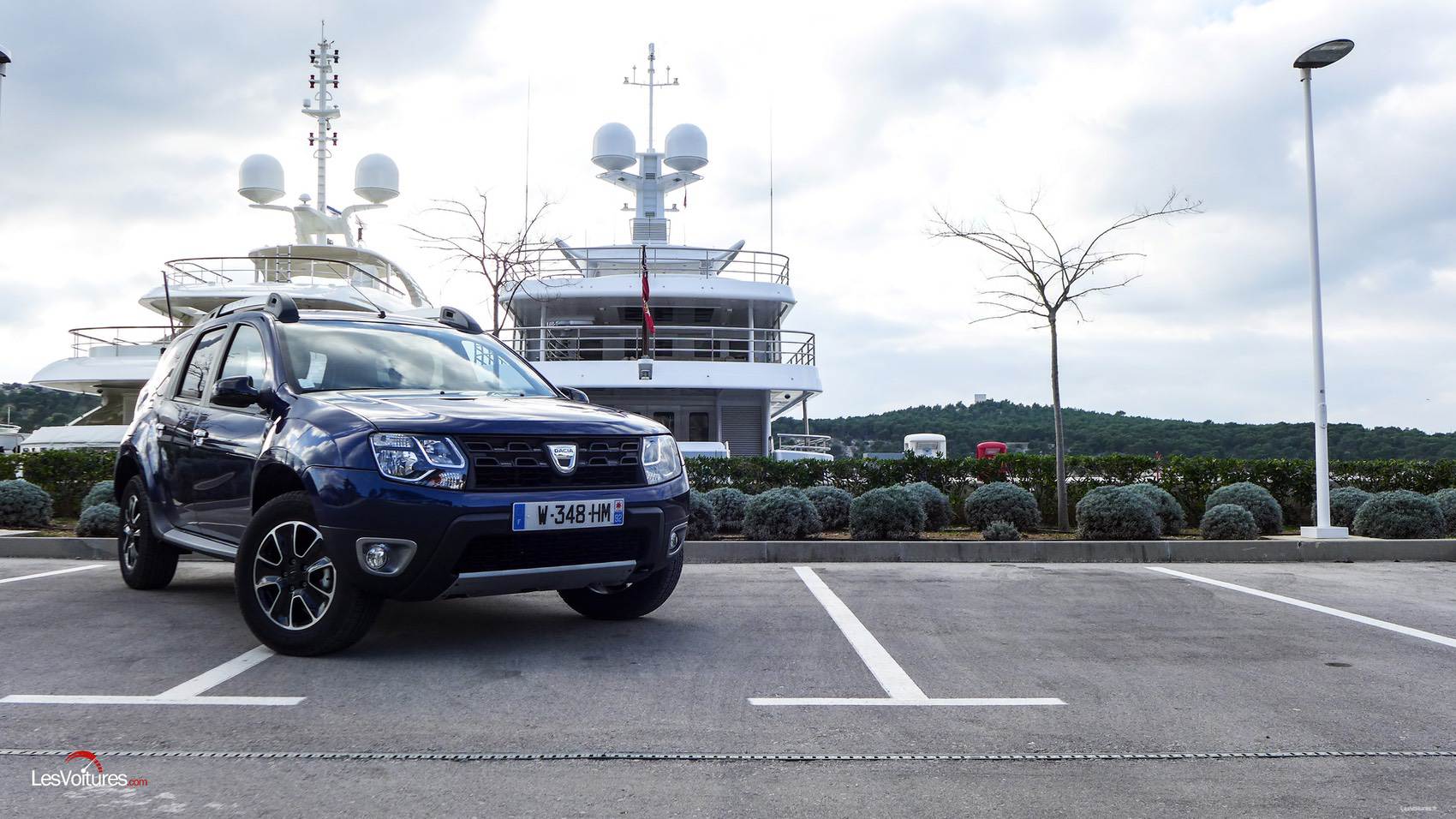 Dans cette version, le Duster est joliment campé sur des jantes en alliage 16″ noires diamantées. Cette teinte est également présente de manière plus sombre sur les montants des portes. Pour parfaire le travail visuel, des barres de toit au ton chrome satiné (identique au cerclages des antibrouillards) ornent le SUV. A noter que la belle teinte Bleu Cosmos de notre modèle d’essai est hélas en option (480 €).