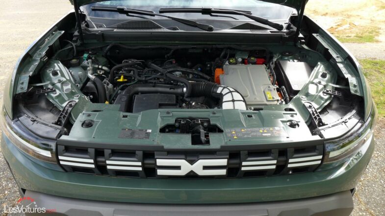 Sur le plan mécanique, le Duster Hybrid 155 HEV utilise la technologie hybride Renault, déjà éprouvée sur plusieurs modèles du groupe. Le système associe un moteur essence 4‑cylindres 1 789 cm³, un moteur électrique principal, un démarreur‑générateur haute tension et une batterie de 1,4 kWh, pour une puissance cumulée de 155 ch. Le tout repose sur une transmission à crabots sans embrayage classique, capable de gérer automatiquement les transitions entre thermique et électrique.