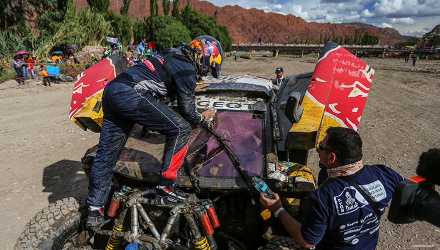 Journée parfaite pour Cyril Despres qui signe en Bolivie sa première victoire au Dakar en auto. Le pilote de la Peugeot 3008 #307 en profite pour prendre les commandes du rallye !