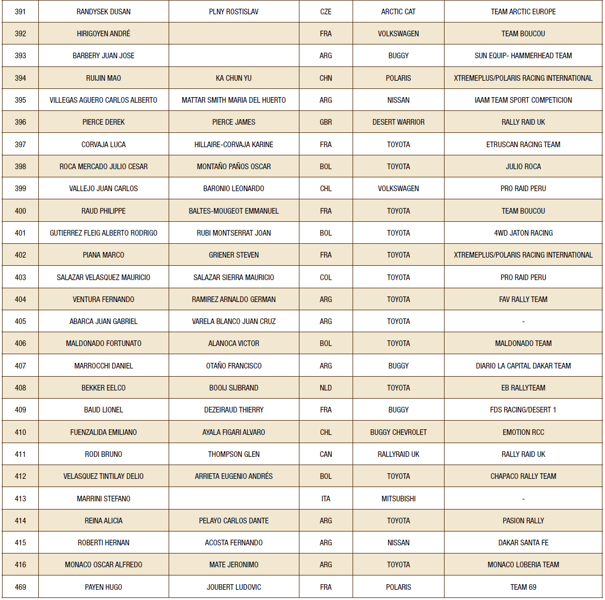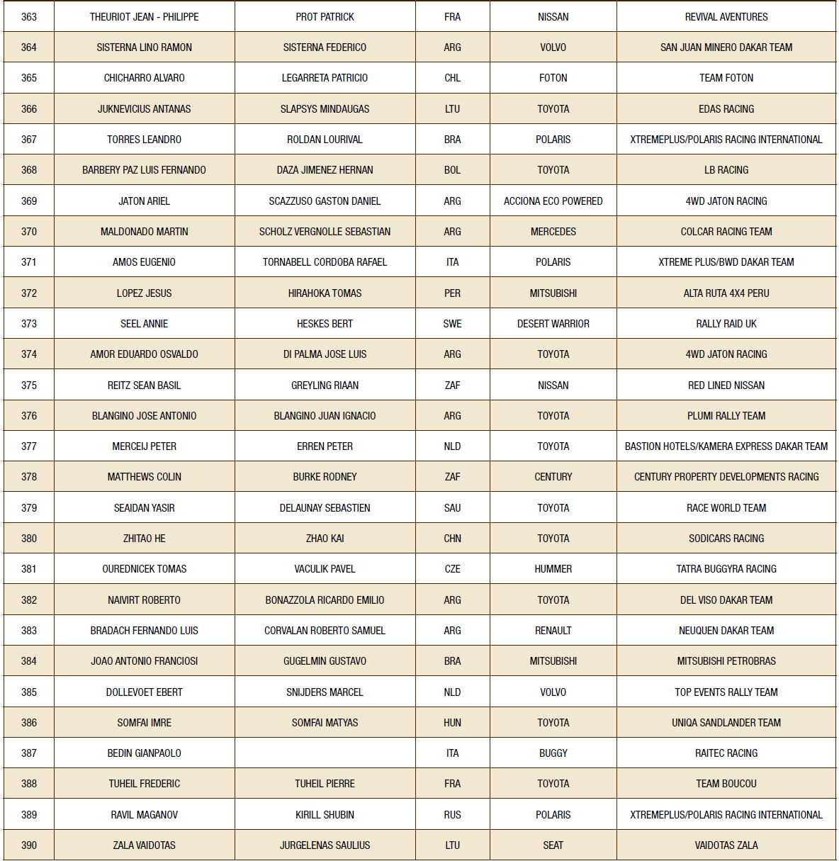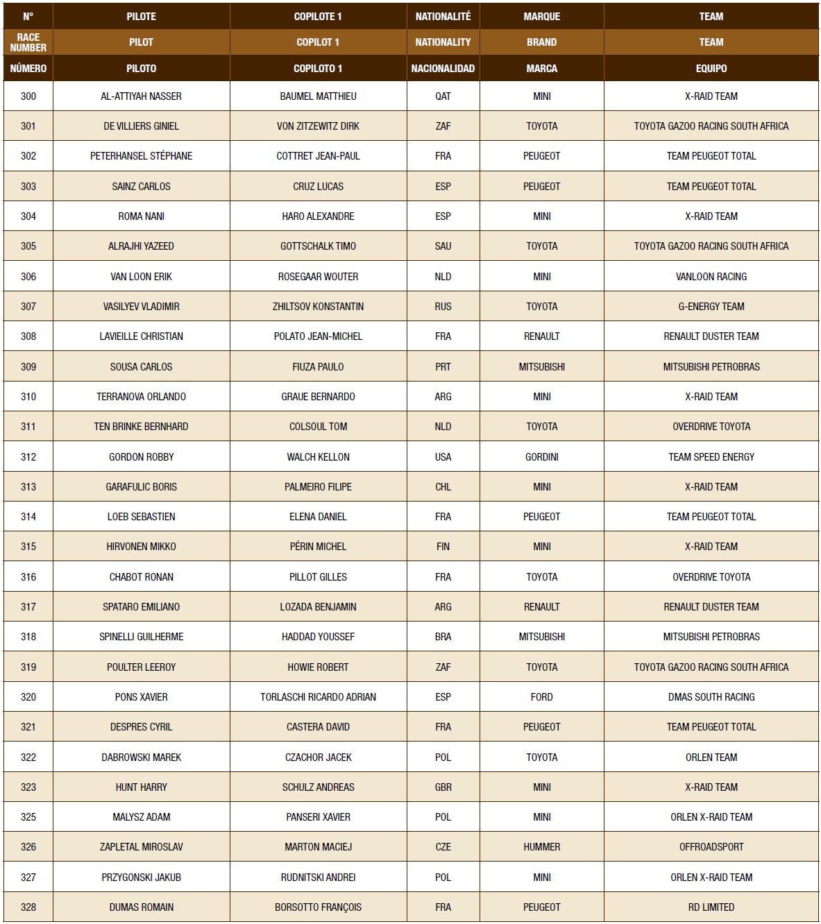 Voici le parcours du Dakar 2016 suivi de la liste complète des engagés (voitures).