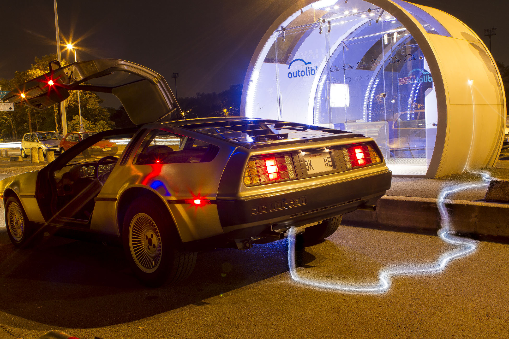 Notre aventure en DMC-12 s’achève avec une dernière photo clin d’œil au film. Nous avons (virtuellement) connecté la DeLorean à une borne Autolib’, 2,21 gigowatts…, THE END ? Et bien, non !
