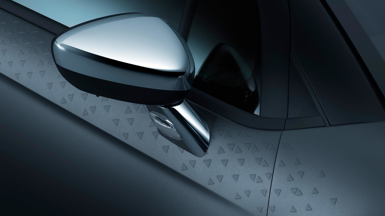 « Un film, découpé selon des motifs géométriques définis par le style, est doté d’une épaisseur et d’une surface granuleuse, qui lui permet, une fois recouvert de peinture, de créer ce relief, tout en se fondant dans la teinte de la voiture. La peinture texturée, extrêmement robuste est enrichie de particules, lui conférant ces reflets satinés, et ce toucher unique. »